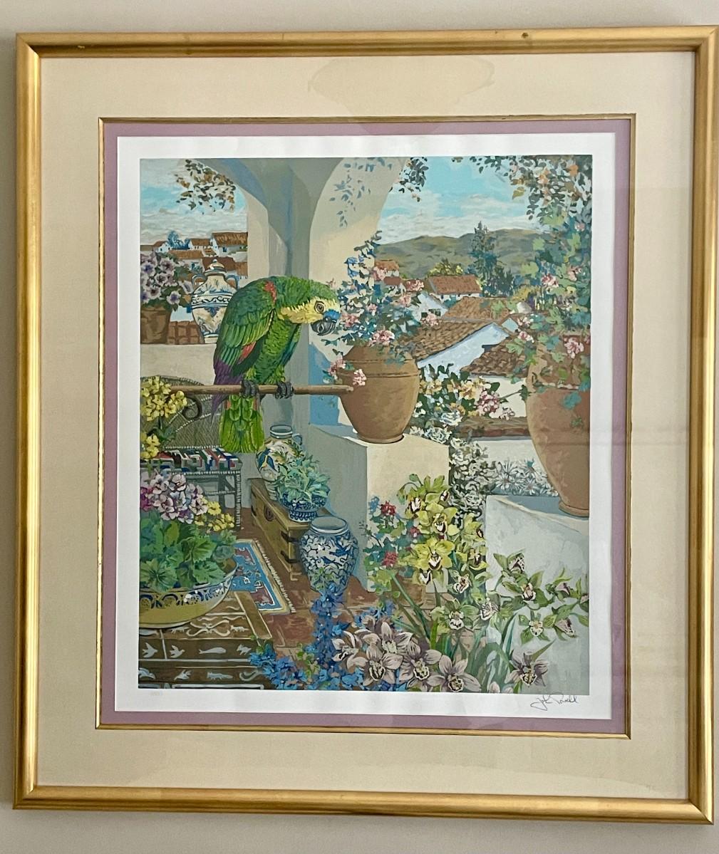 Parrot and Rooftops by Artist John Powell. Limited edition numbered 11/295.