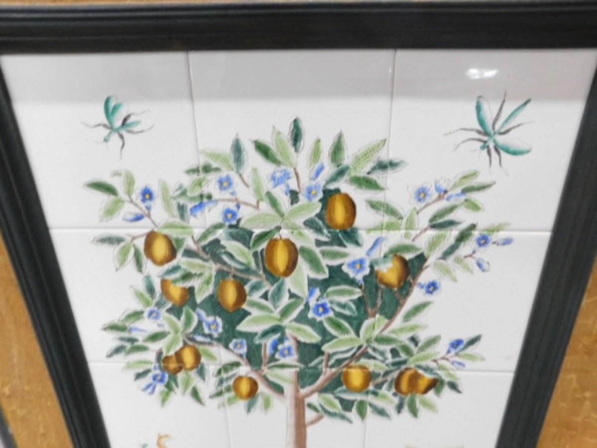 John Richard Framed Ceramic Tile Wall Art Fruit Tree in Urn with Flanked by Grasshoppers Choice A