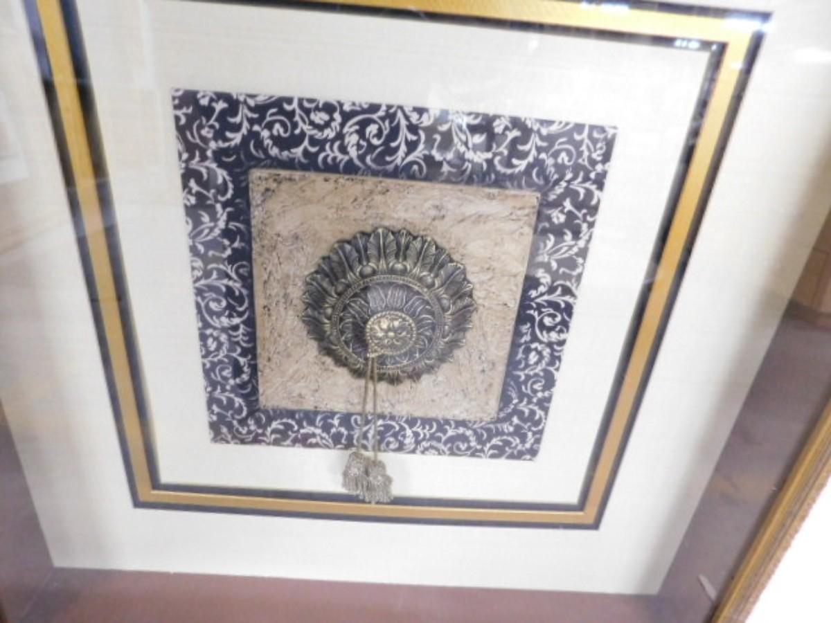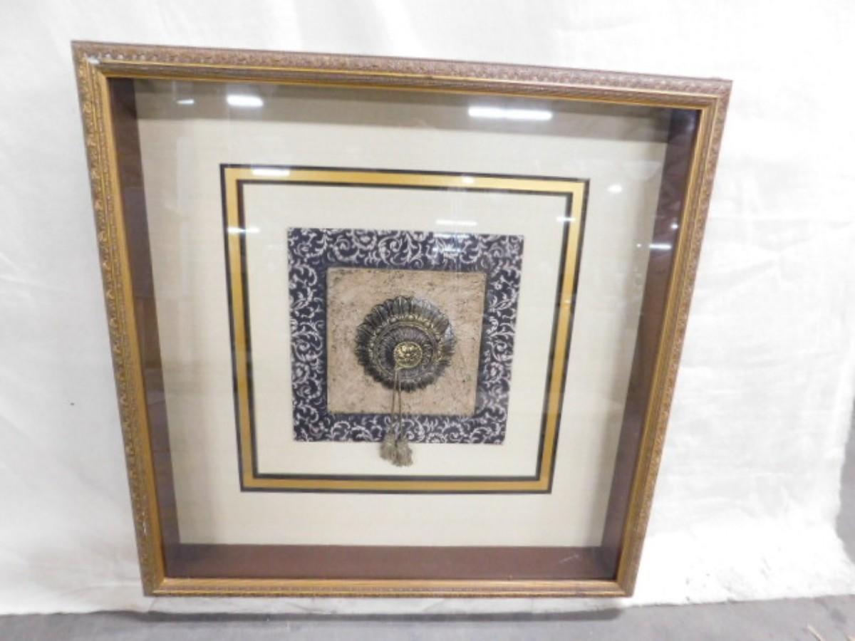 John Richard Shadow Box French Medallion with Tassel Expect some wear or scratches to the finish. Shipping option available via freight or local mover at Buyer's expense. Buyer must have all shipping scheduled within the stated dates and times of pickup. Recommended local mover is Beaty Bros. Moving 828-201-2982