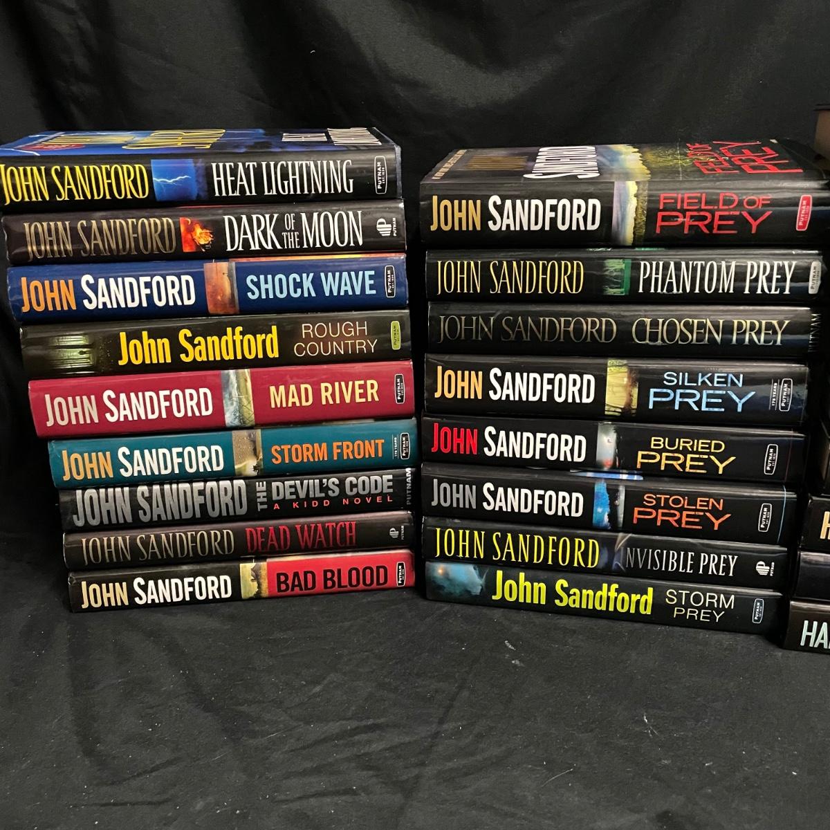 Over 15 hard cover thrillers by John Sandford plus ten hardcover Harlan Coben novels and four paperbacks. See images for titles. Shipping available.