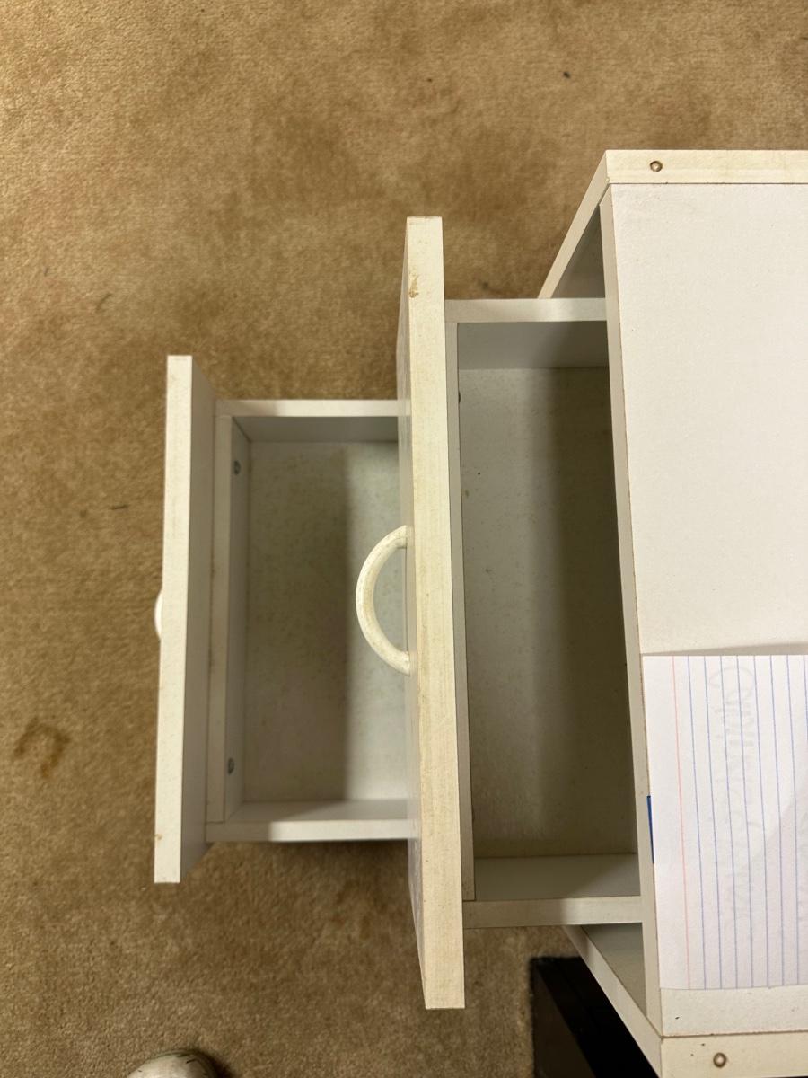 Variety of piano music books that include John W. Schaum & Eckstein, hymns and more. Black metal two drawer file cabinet measures 15” x 26.5” x 28.5”H. White two drawer cabinet appears to be engineered wood and measures 15” on all sides. Local pickup only. Winning bidder must bring assistance to help move and load this item due to its weight and/or size.
