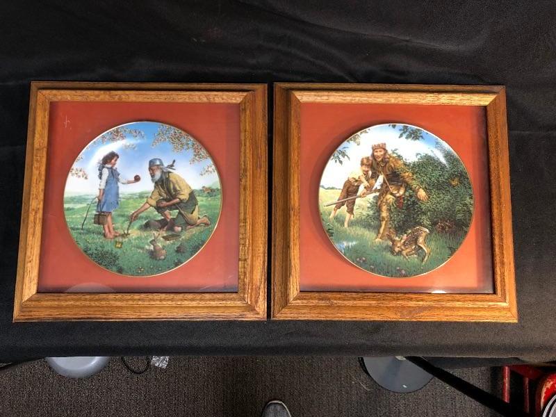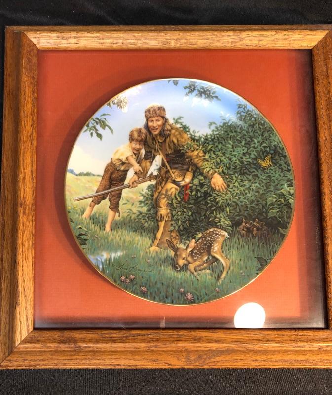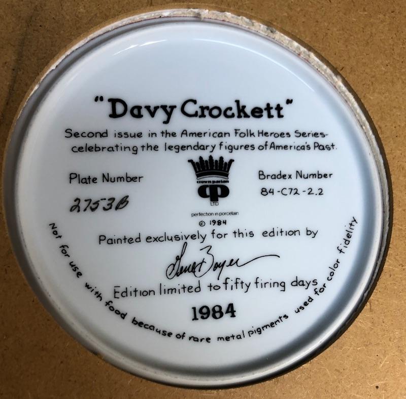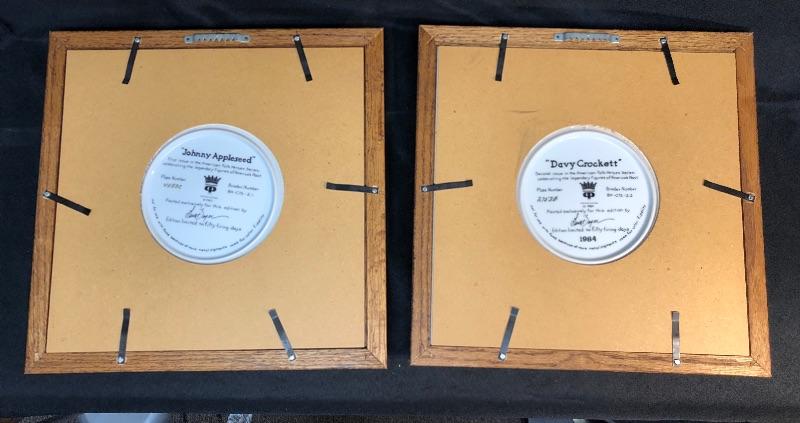 Johnny Appleseed And Davy Crocket collector plates in display boxes