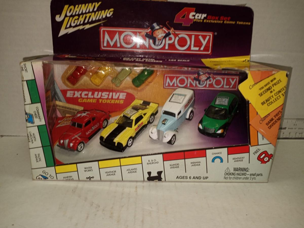 Johnny Lightning Monopoly 4 Car Box Set Plus Game Tokens 1:64