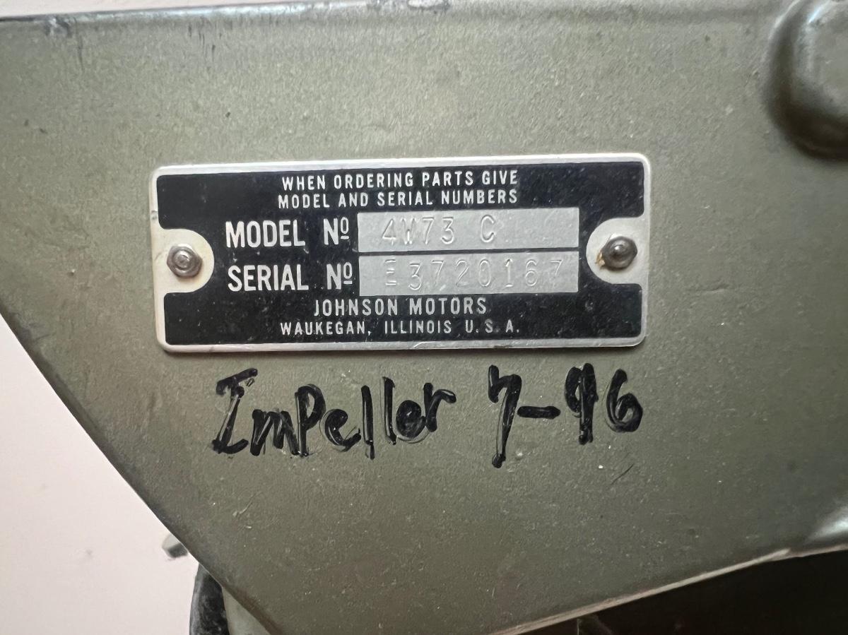 1973 Johnson 4HP outboard motor. Model 4W73C. Motor has compression but has not been tested any further. You are buying this motor as-is. See pictures for condition.