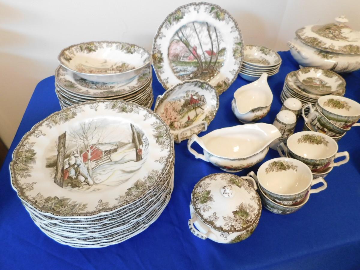 Johnson Bros. Friendly Village 100pc. China Set Large Platters Tureen Teapot Place Settings +++