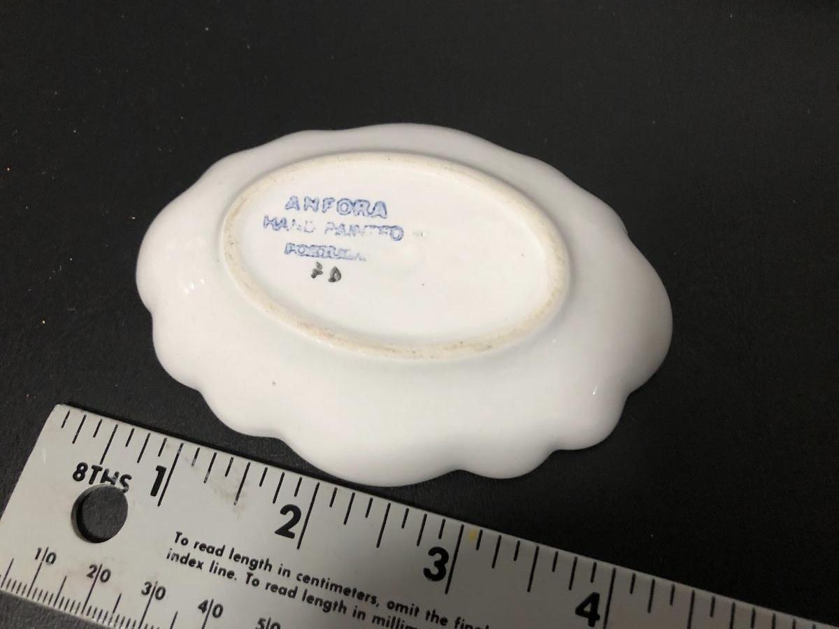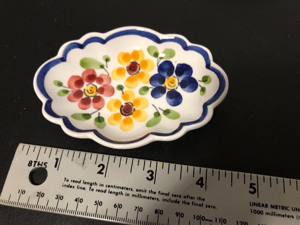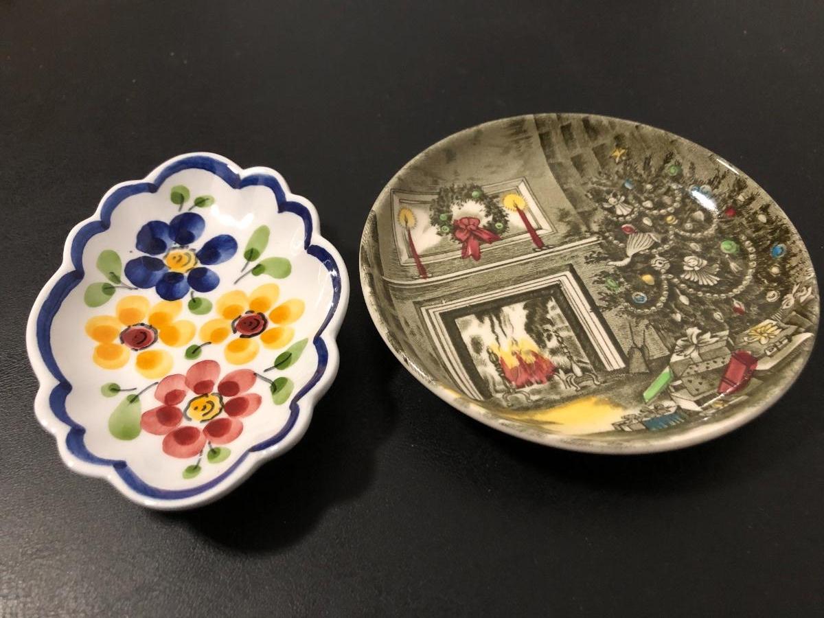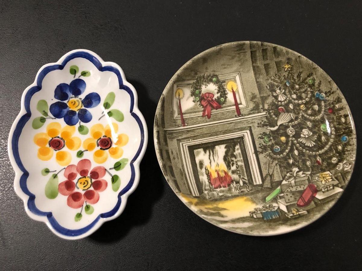 All items are sold as is, as found in the estate. Please see all photos for content, measurements and condition. Johnson Brothers Friendly Village Christmas Dish (ENGLAND); Anfora Hand Painted Dish, Portugal, multi-color flowers, blue scalloped Dish.
