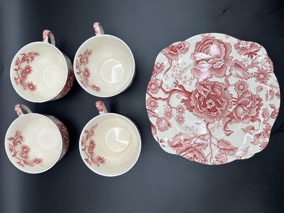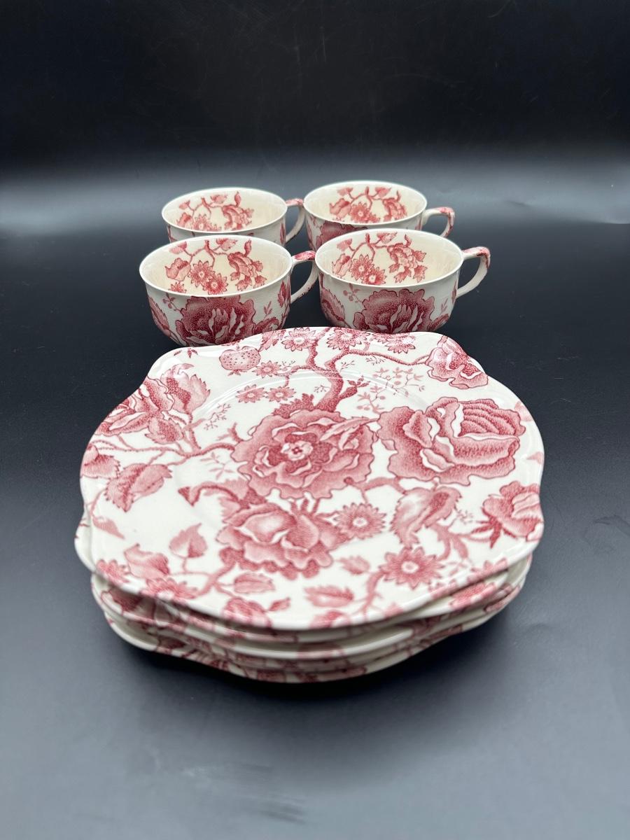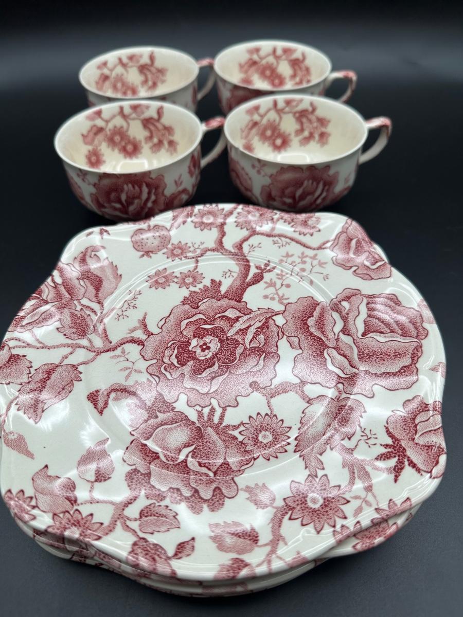 JOHNSON BROTHERS English Chippendale Pink Cross Plates and Cups