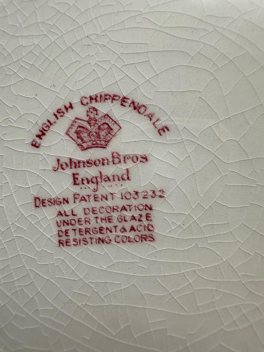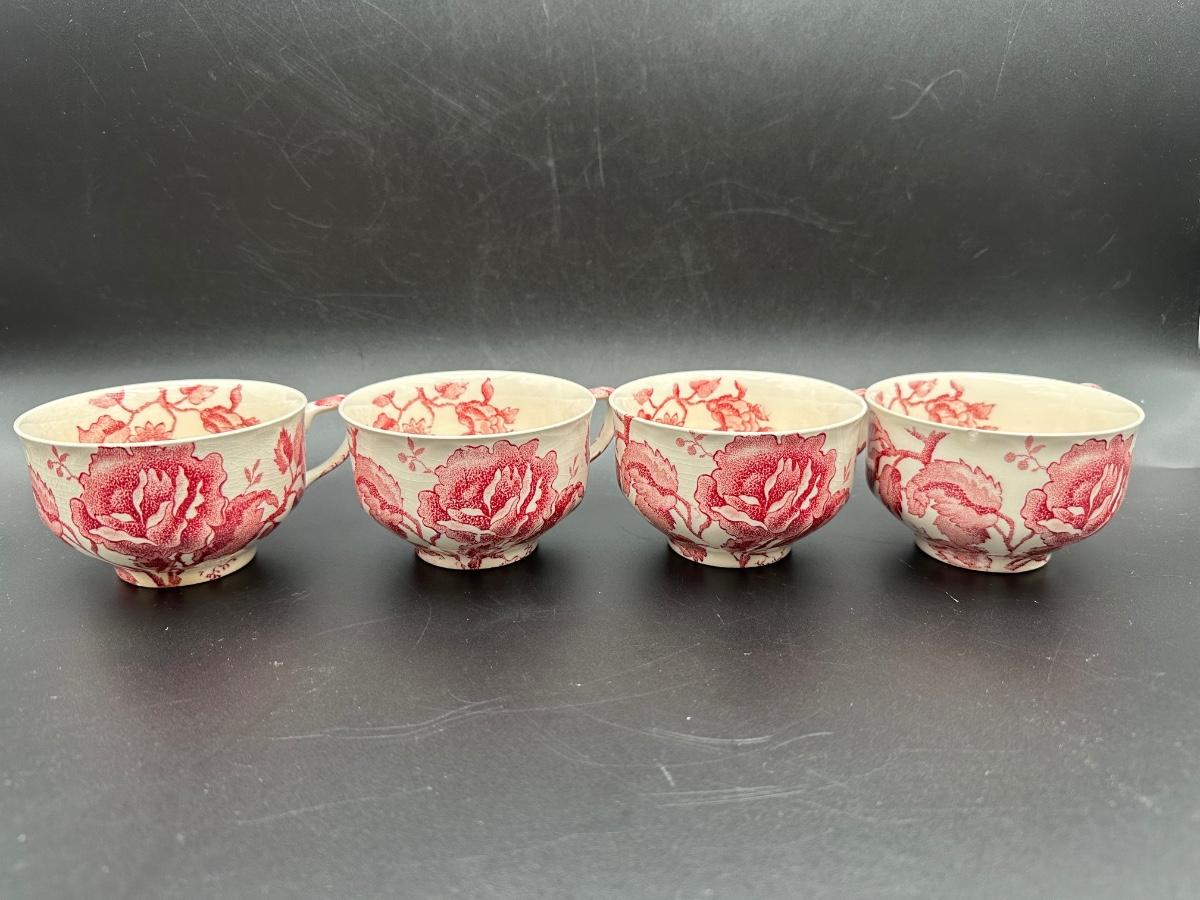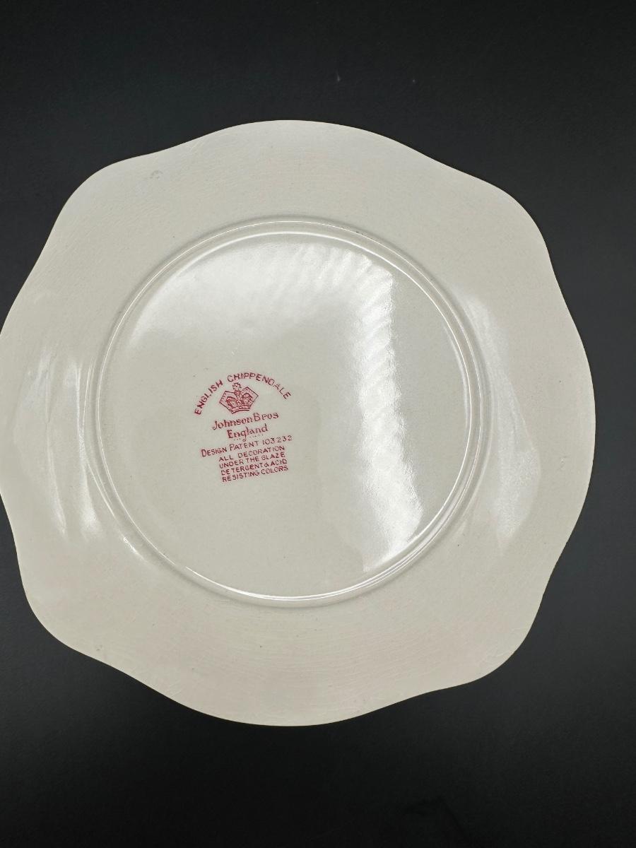 JOHNSON BROTHERS English Chippendale Pink Cross Plates and Cups