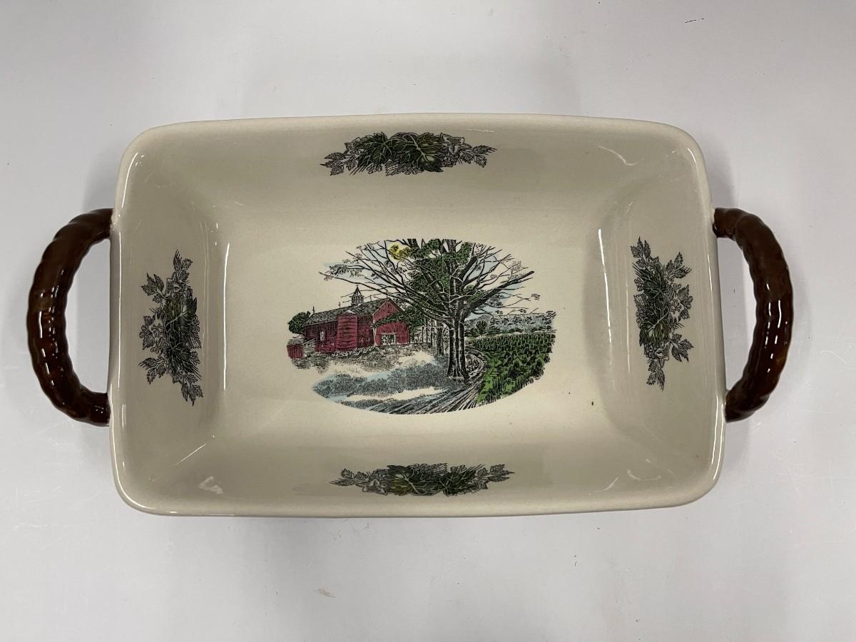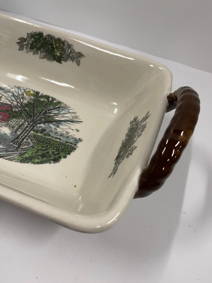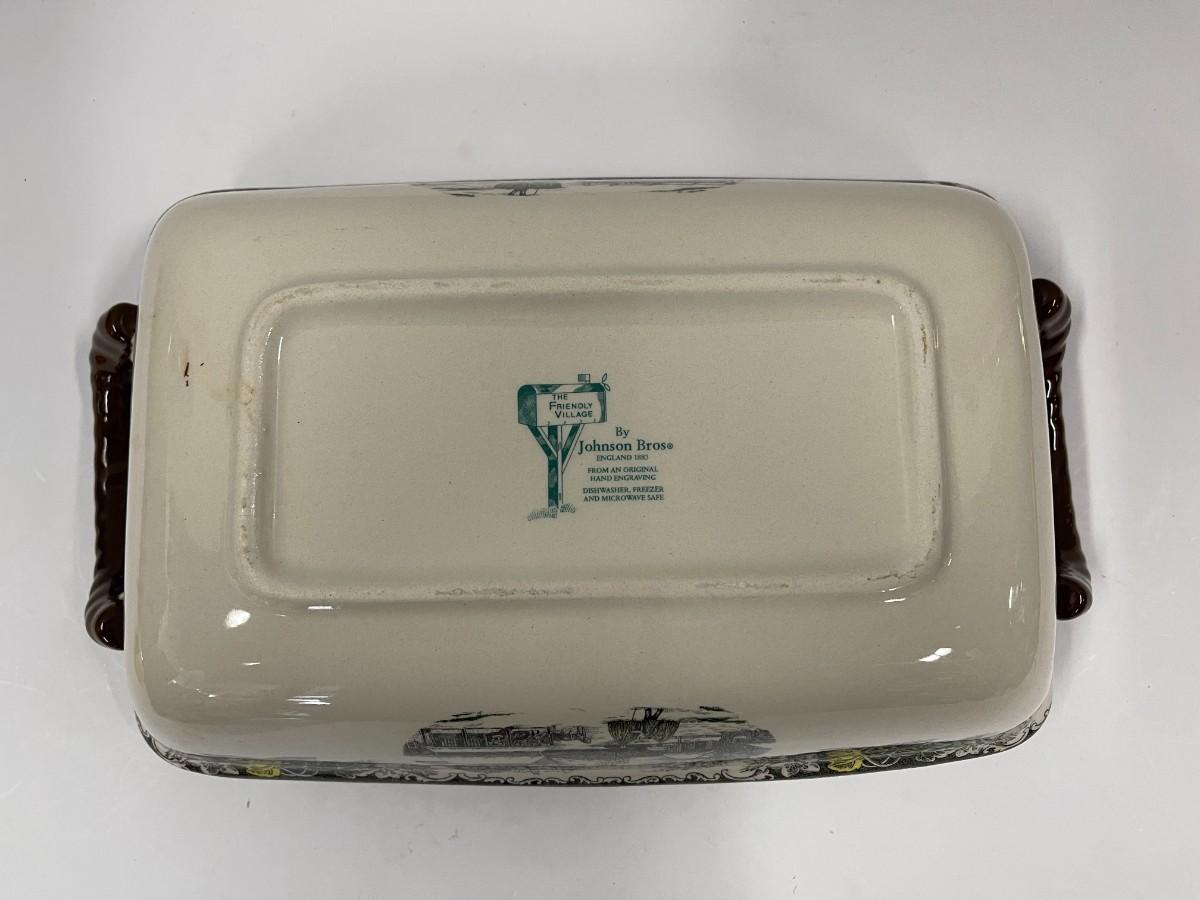Johnson Brothers Friendly Village rectangular baker with brown handles. Excellent condition, no cracks, chips or crazing. 12" x 7". # 1262