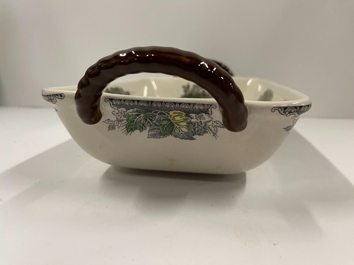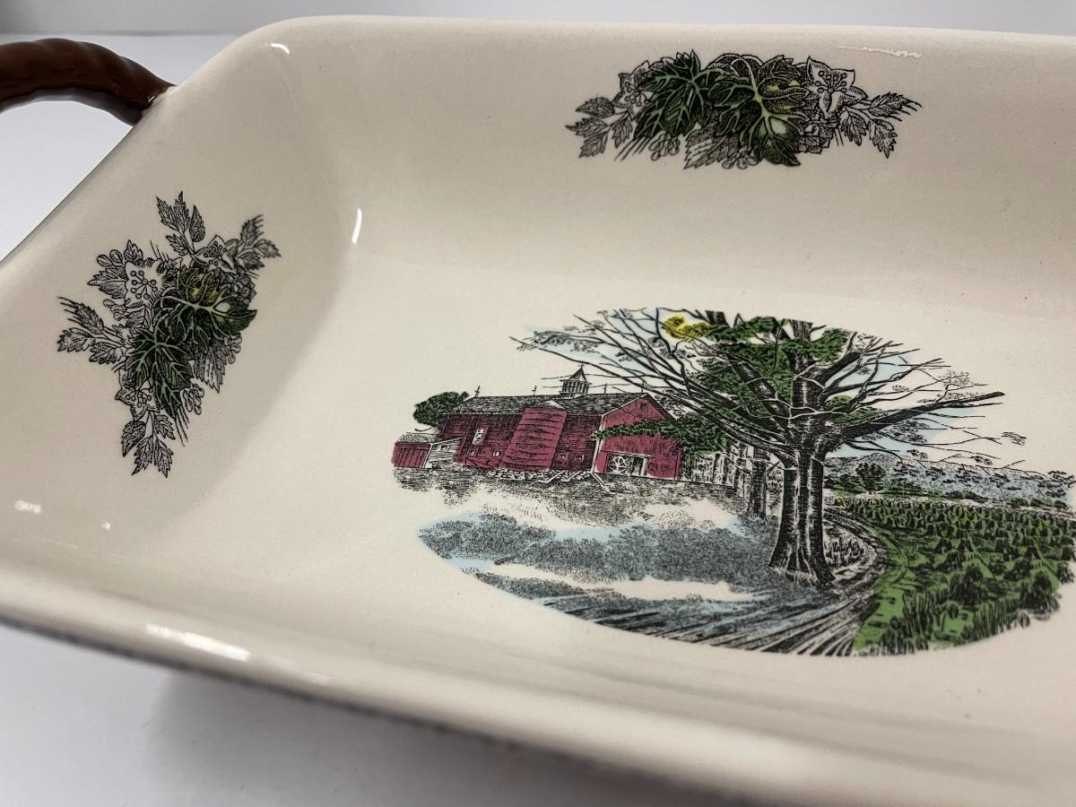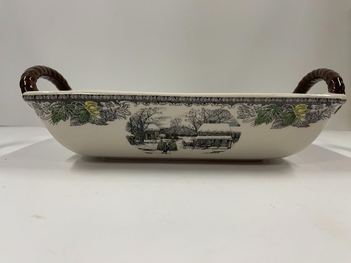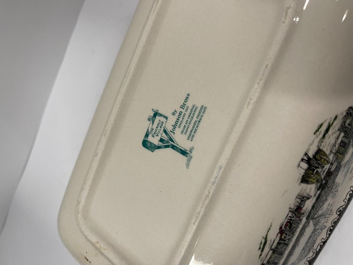 Johnson Brothers Friendly Village rectangular baker with brown handles. Excellent condition, no cracks, chips or crazing. 12" x 7". # 1262