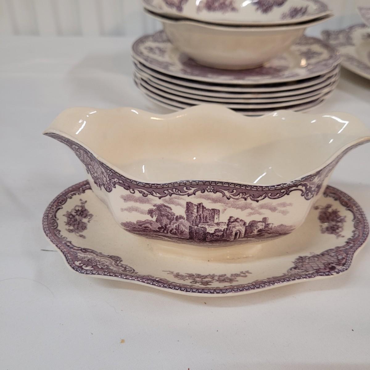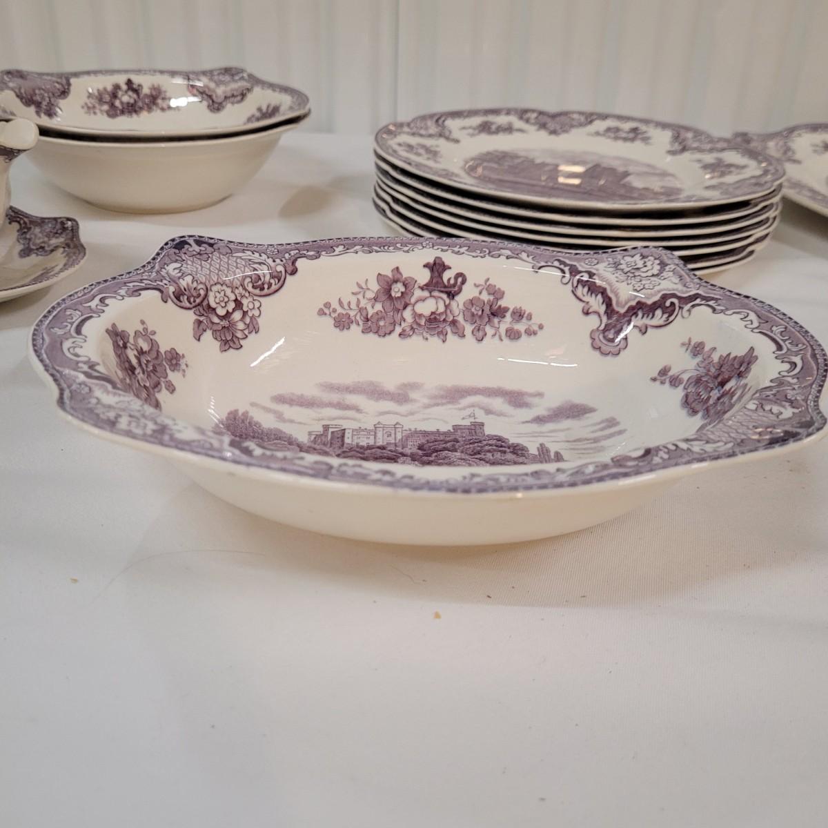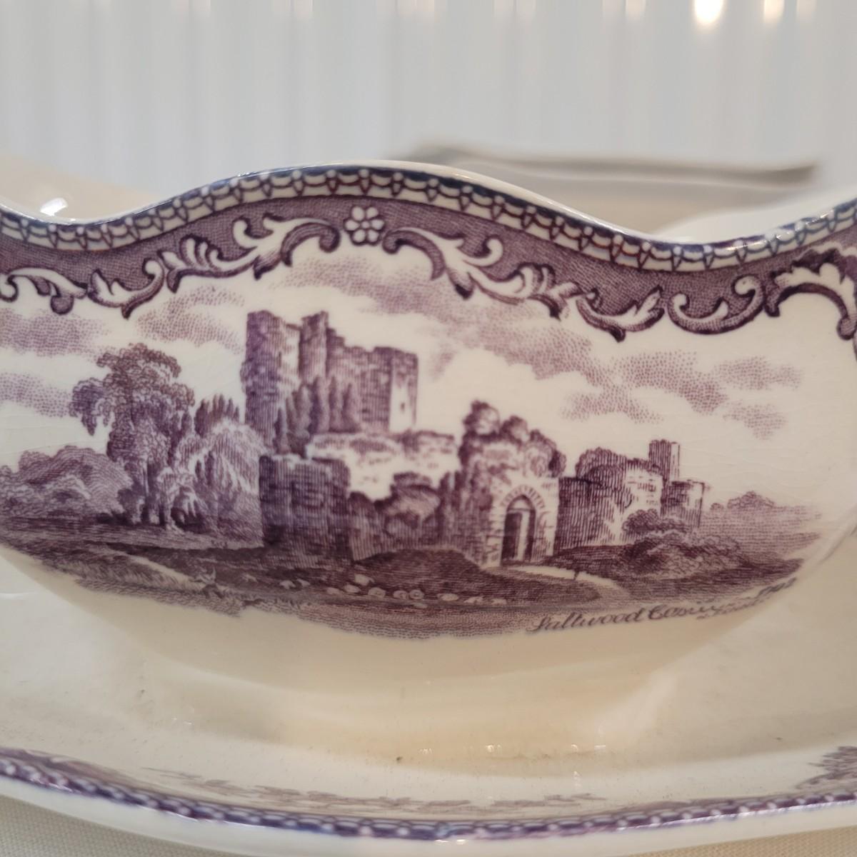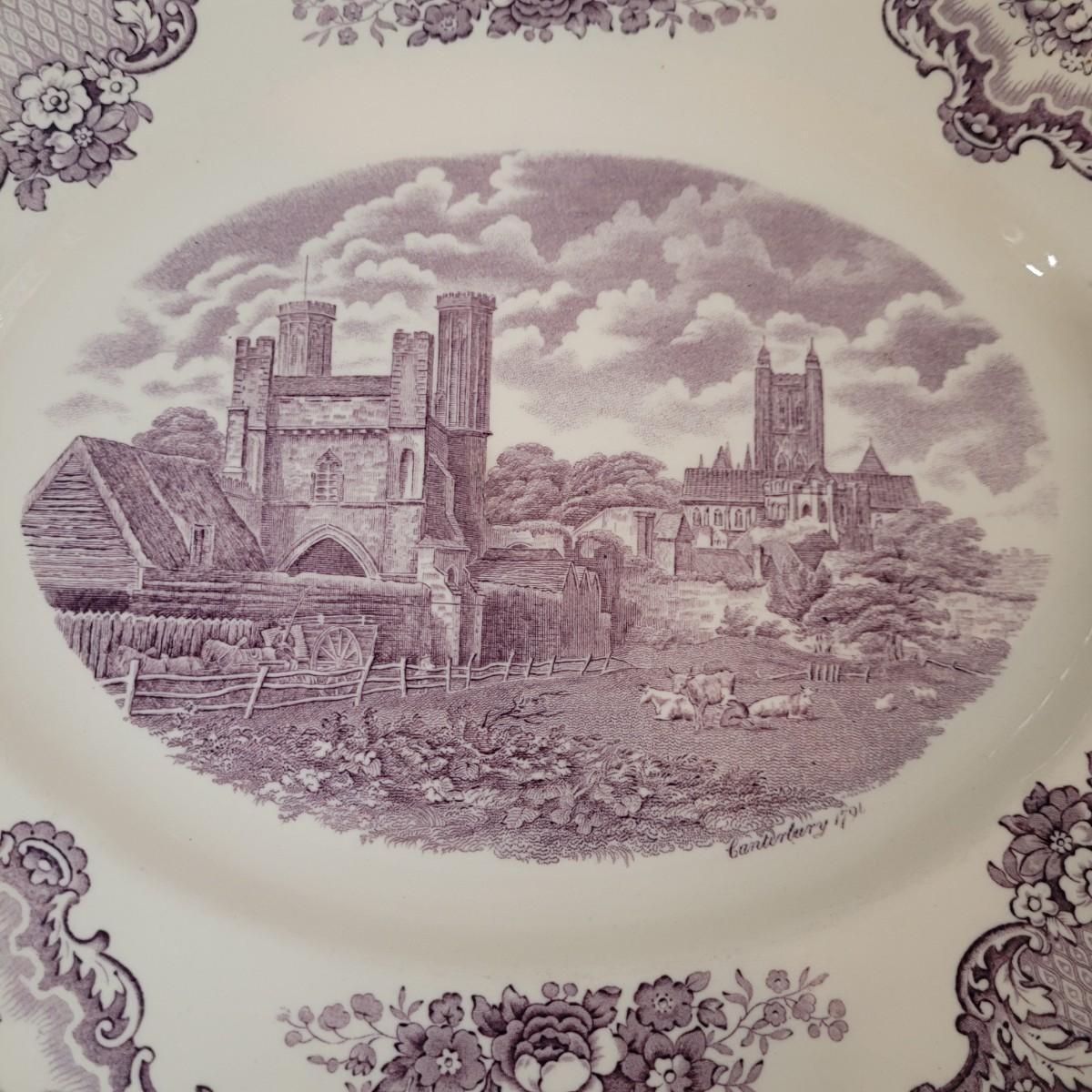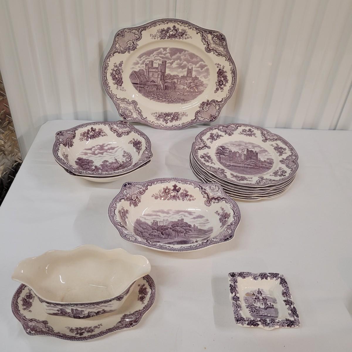 15 piece serving set plus one small Maling ashtray. Serving ware features a variety of British castles from the 1700's. Set is in excellent condition with only two chips (see photos). Large platter measures approximately 14"L x11.5"W. Shipping available.
