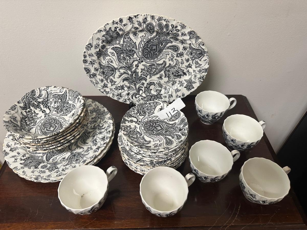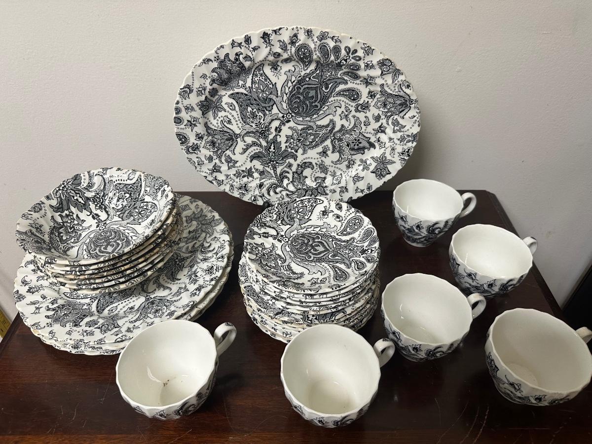 JOHNSON BROTHERS PAISLEY IRONSTONE DISH SET AS PICTURED