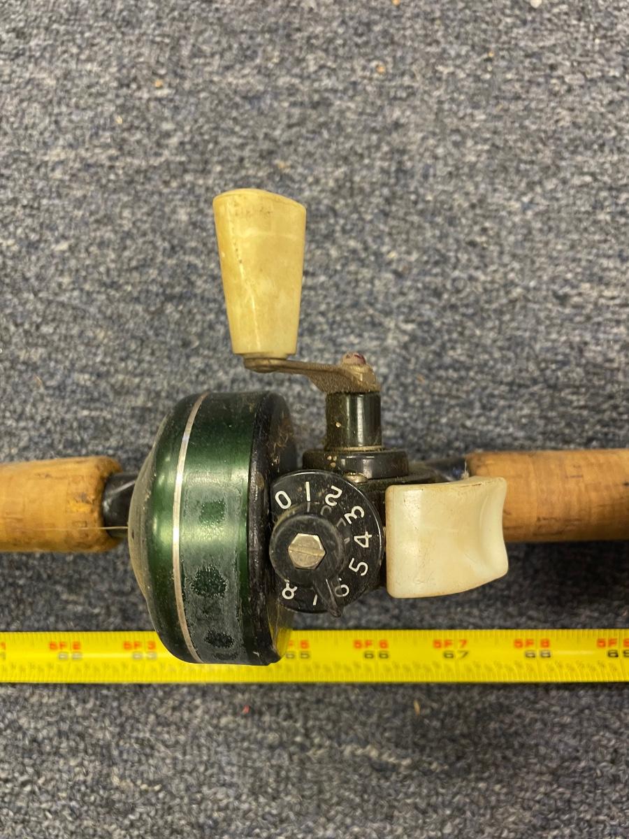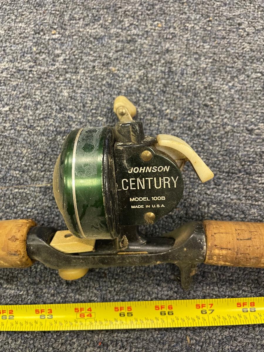 Johnson century #1008 reel and Ike Walton fiberglass rod