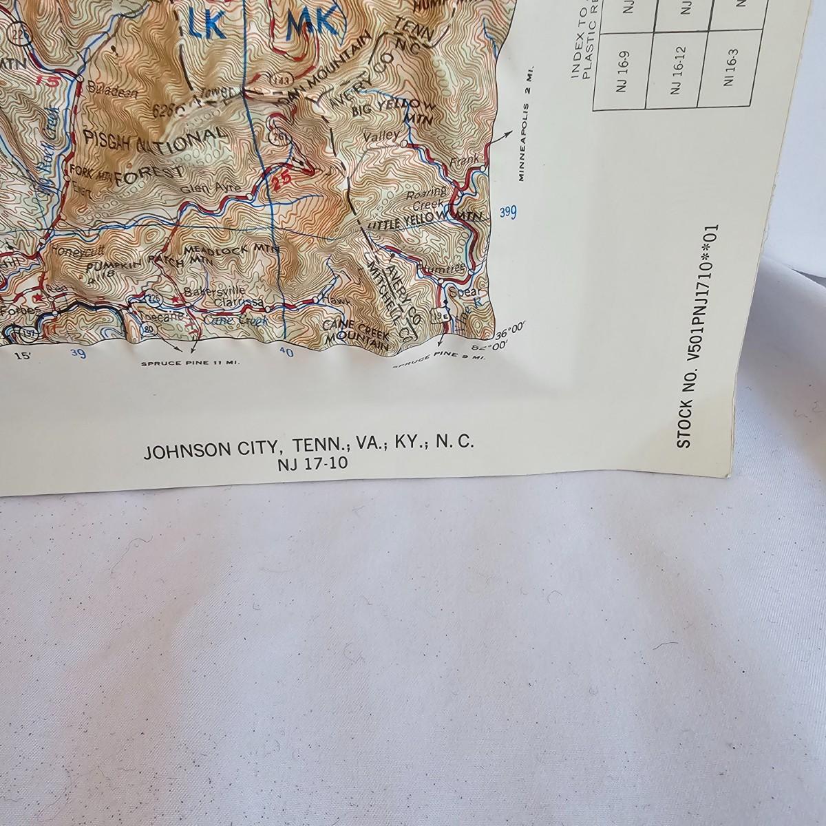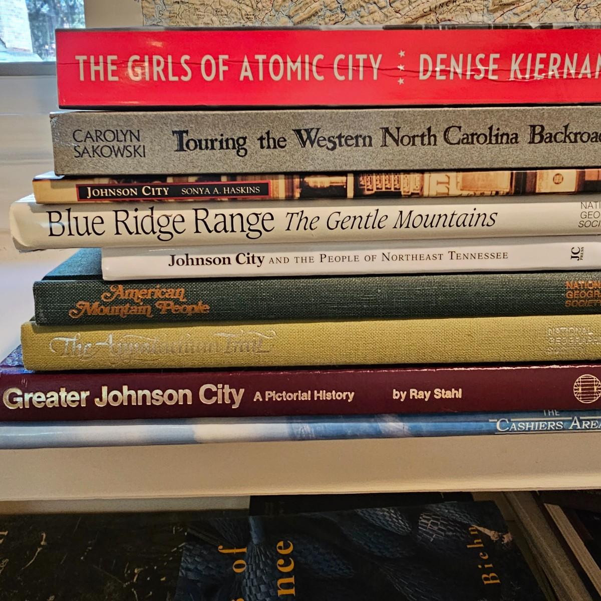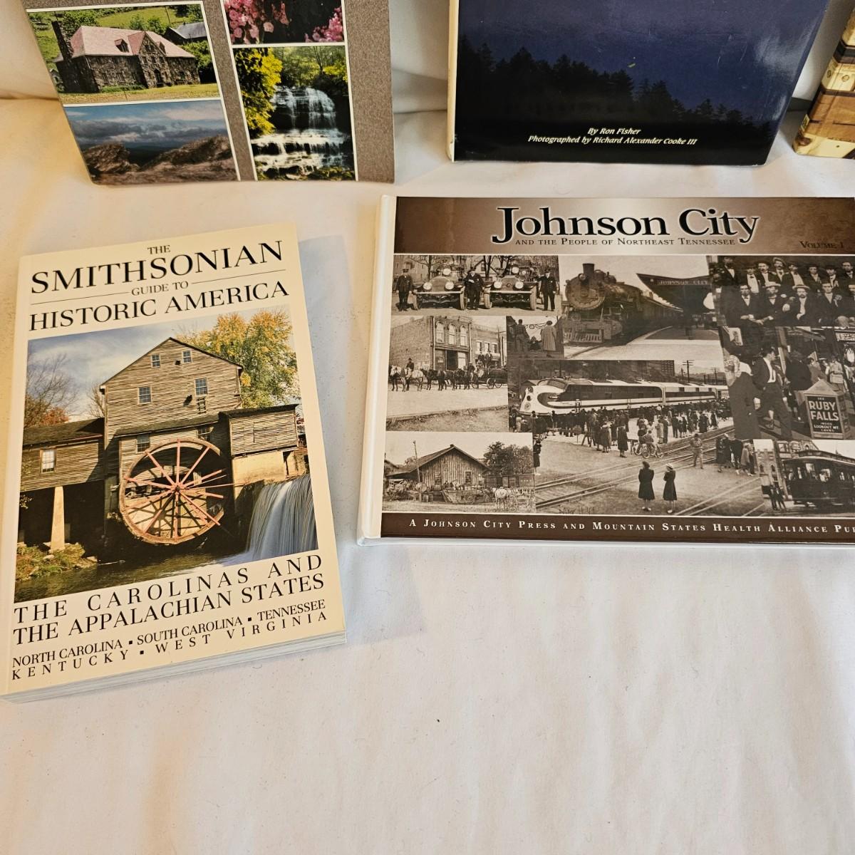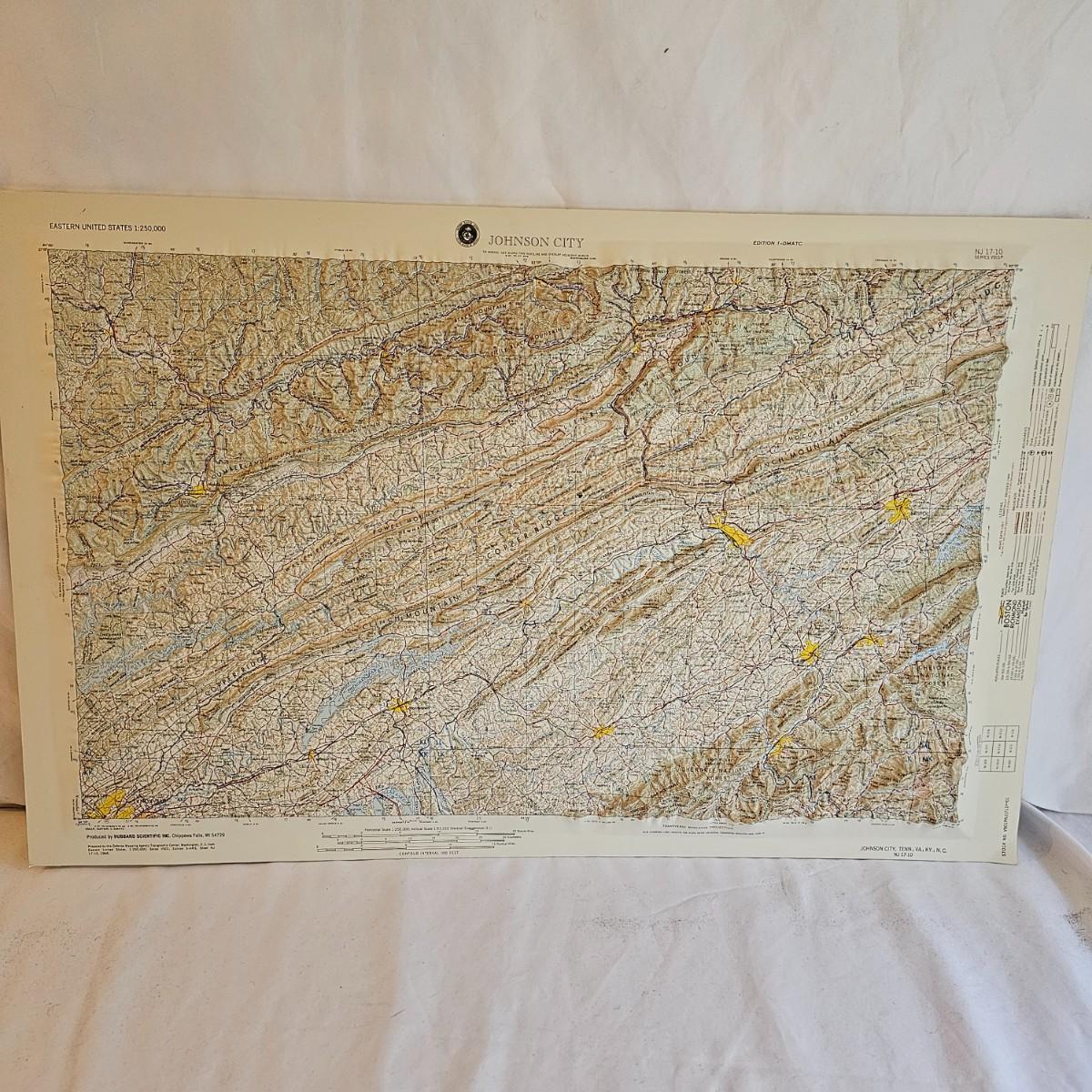 A 32" x 21" topographical map of Johnson City and surrounding areas, mounted on foam core board. Lot also includes books on touring and traveling the Blue Ridge and surrounding area. See photos for details. Local pickup only.