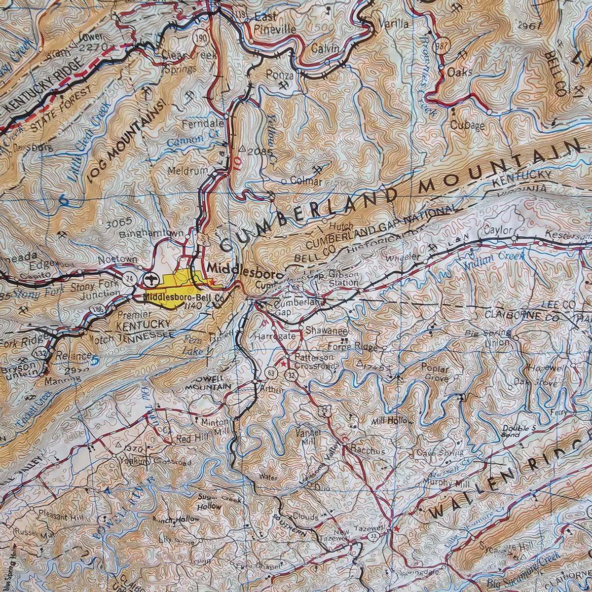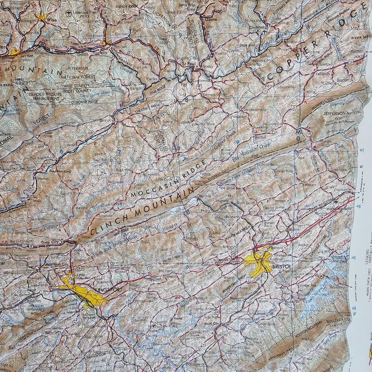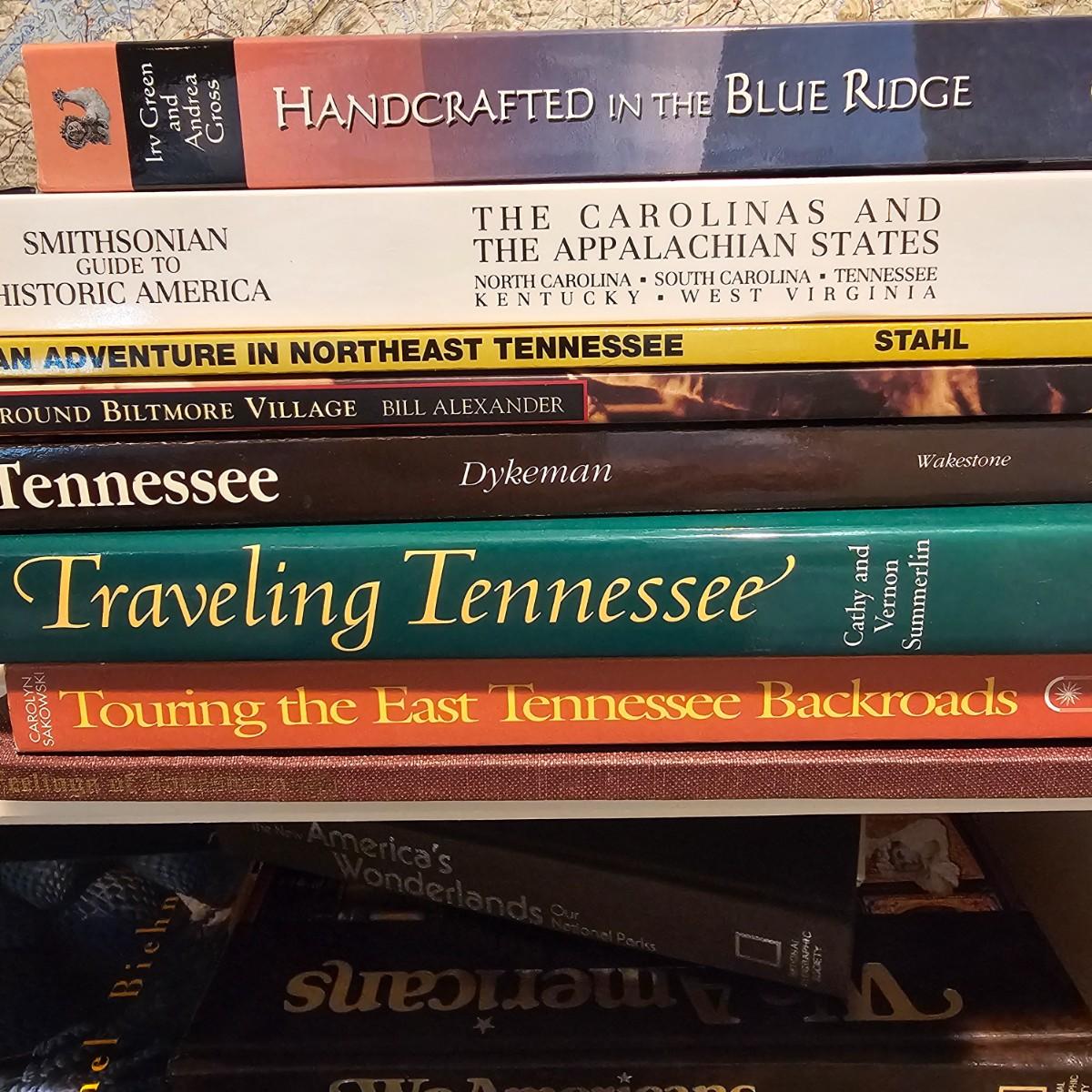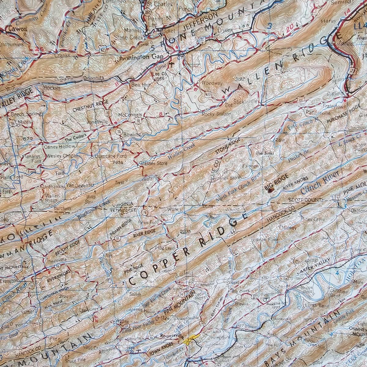 A 32" x 21" topographical map of Johnson City and surrounding areas, mounted on foam core board. Lot also includes books on touring and traveling the Blue Ridge and surrounding area. See photos for details. Local pickup only.