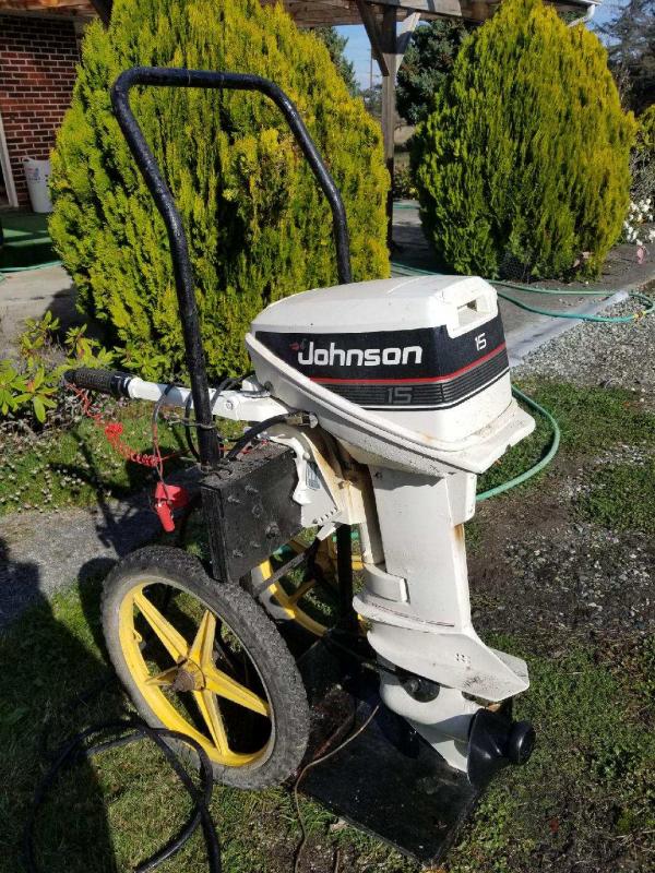 Johnson 15 horsepower with rack, works. Price negotiable, contact Rhonda directly