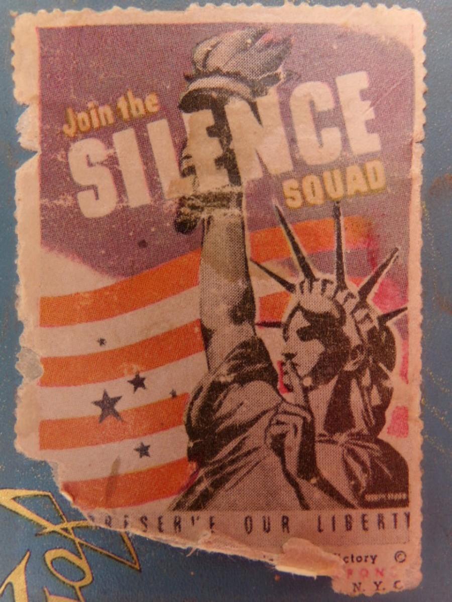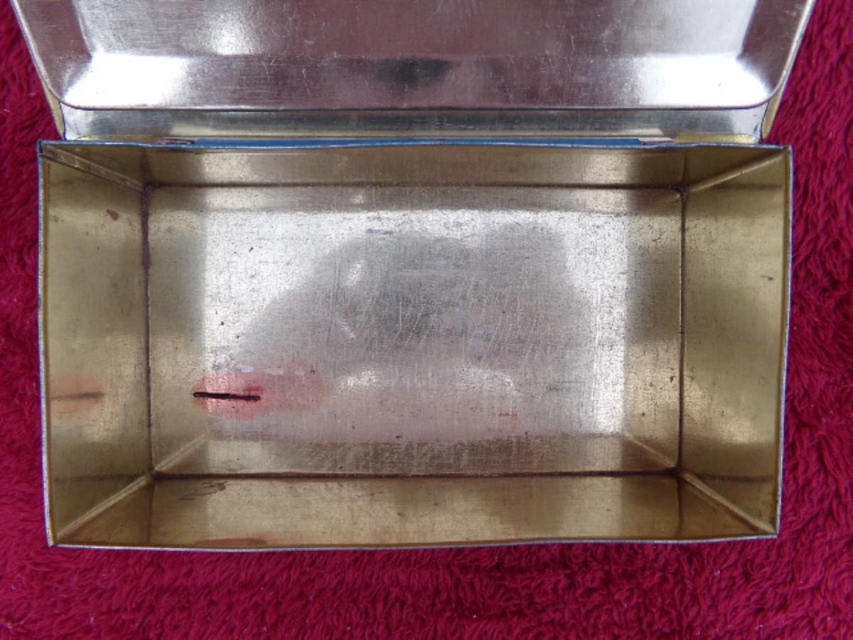 VTG/Antique Johnston’s Chocolates tin w/hinged lid is believed to be c.1920s-30s. Johnston’s was in business from 1848 to 1987. This type of tin was used for advetising and packaging mostly for “Cavalier” variety chocolates. This particular tin has a WWII vintage U.S.Government propaganda stamp on the lid reminding people they should NOT talk about anything they are aware of or connected to that had to do with war time production of war goods, troop movement, etc. for the well being of the country. It’s an extremely RARE item to say the least. Over all this item is in Very Good condition for it’s age. Tin is about 7-1/2"x4-1/4"x2-1/2". Stamp is about 2-1/2"x1-3/4".