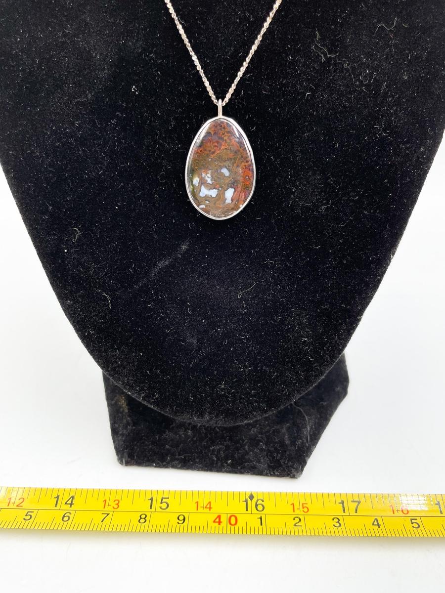 In good condition. Stone appears but not confirmed to be Jasper. Chain clasp is marked JOIA 925 & ITALY (please see photos).