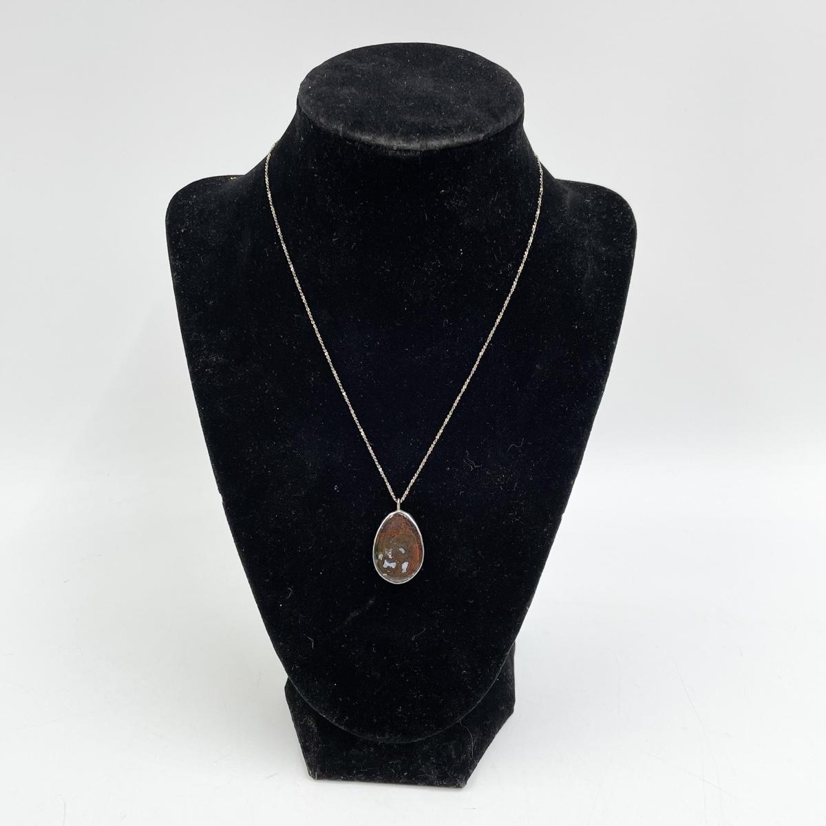 JOIA STERLING SILVER & JASPER STONE PENDANT NECKLACE