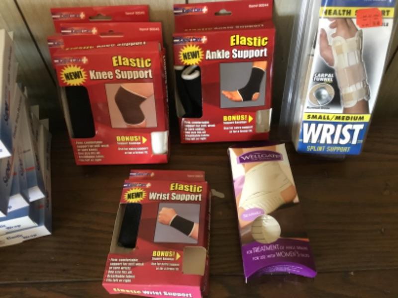 Lot of joint support wraps and braces. For the elbow, wrist, knee, and ankle.