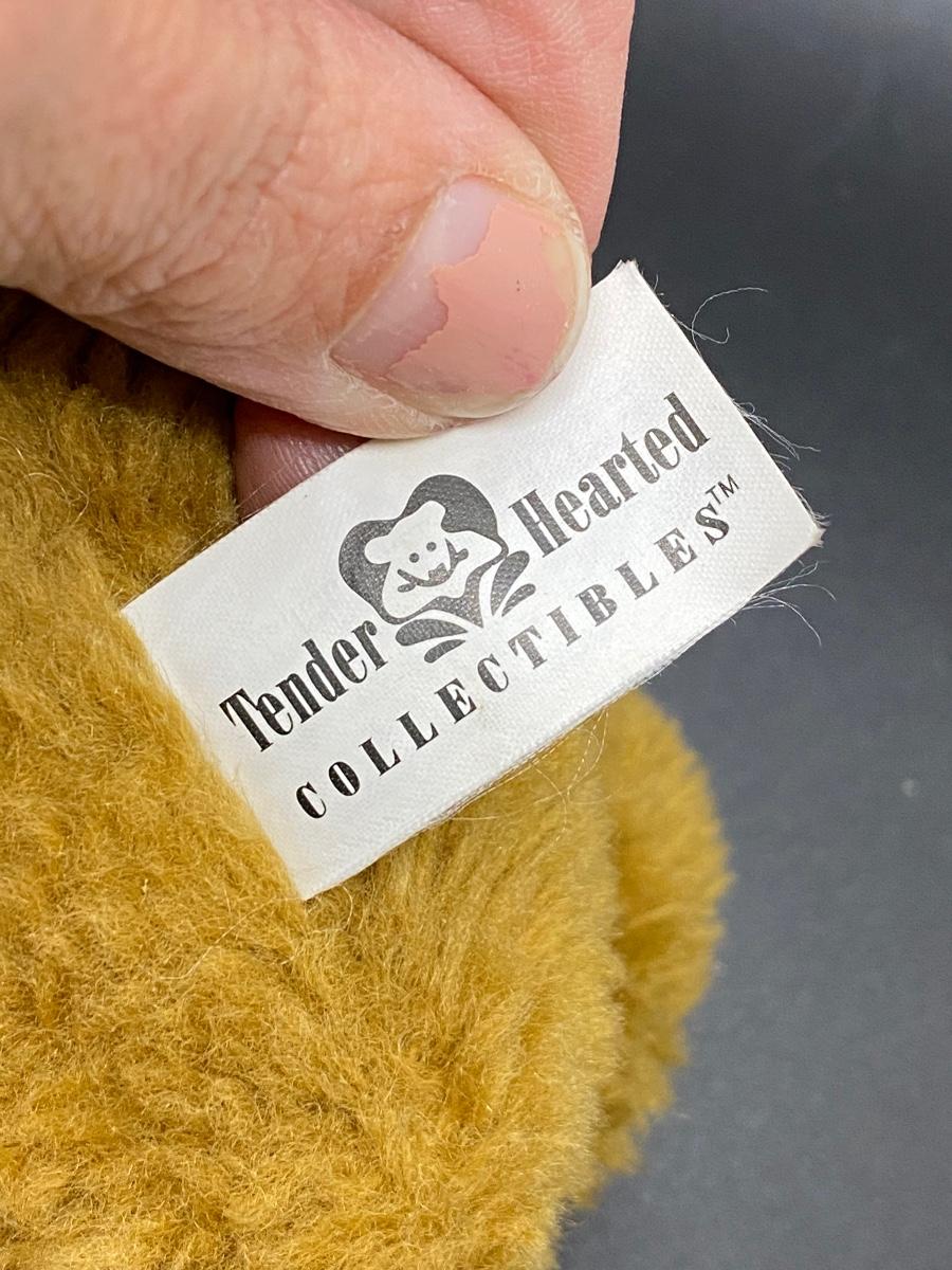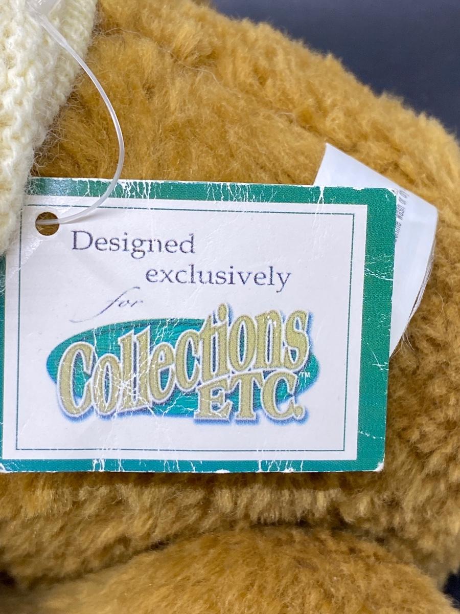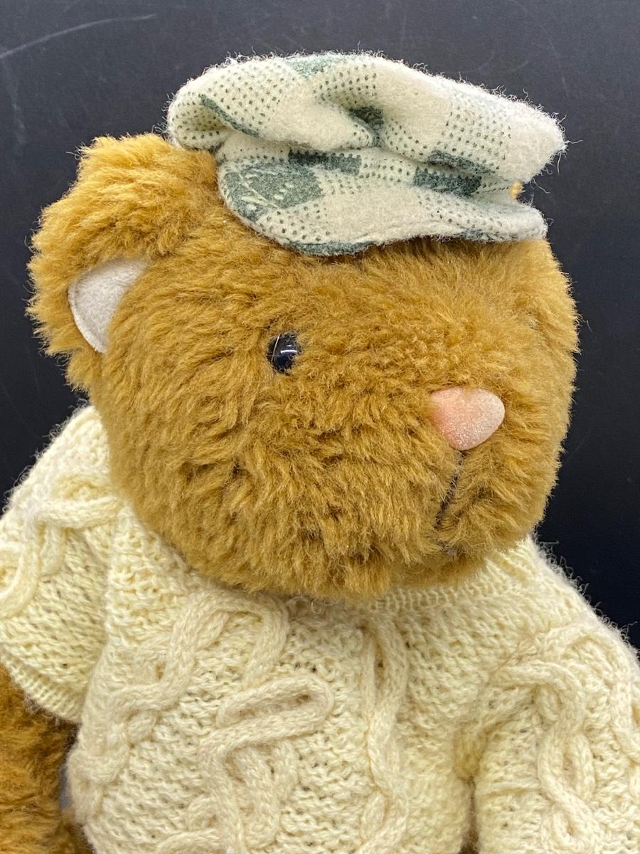 Cute jointed plush animal from Tender Hearted Collectibles. Wearing a sweater and cap, it has shamrocks on the soles of it's feet. In good condition, no holes.