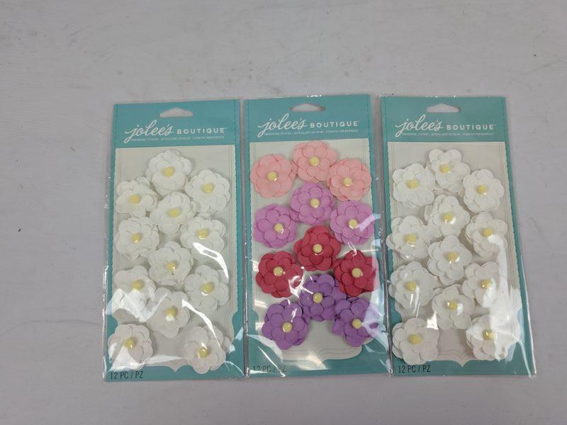 Jolee's Boutique Flower Stickers, 12 Pc Per Pack, 3 Pack, White/Colorful - New