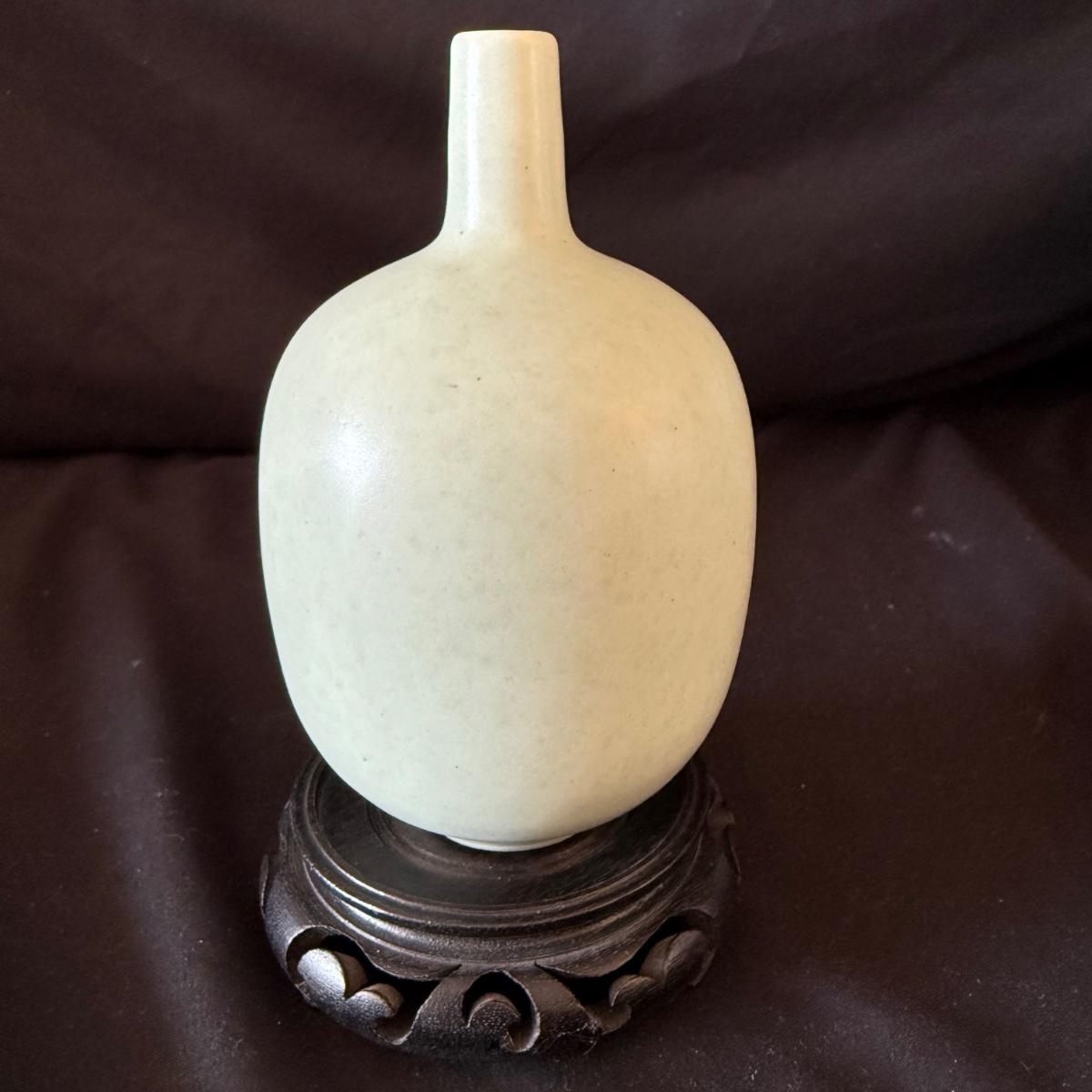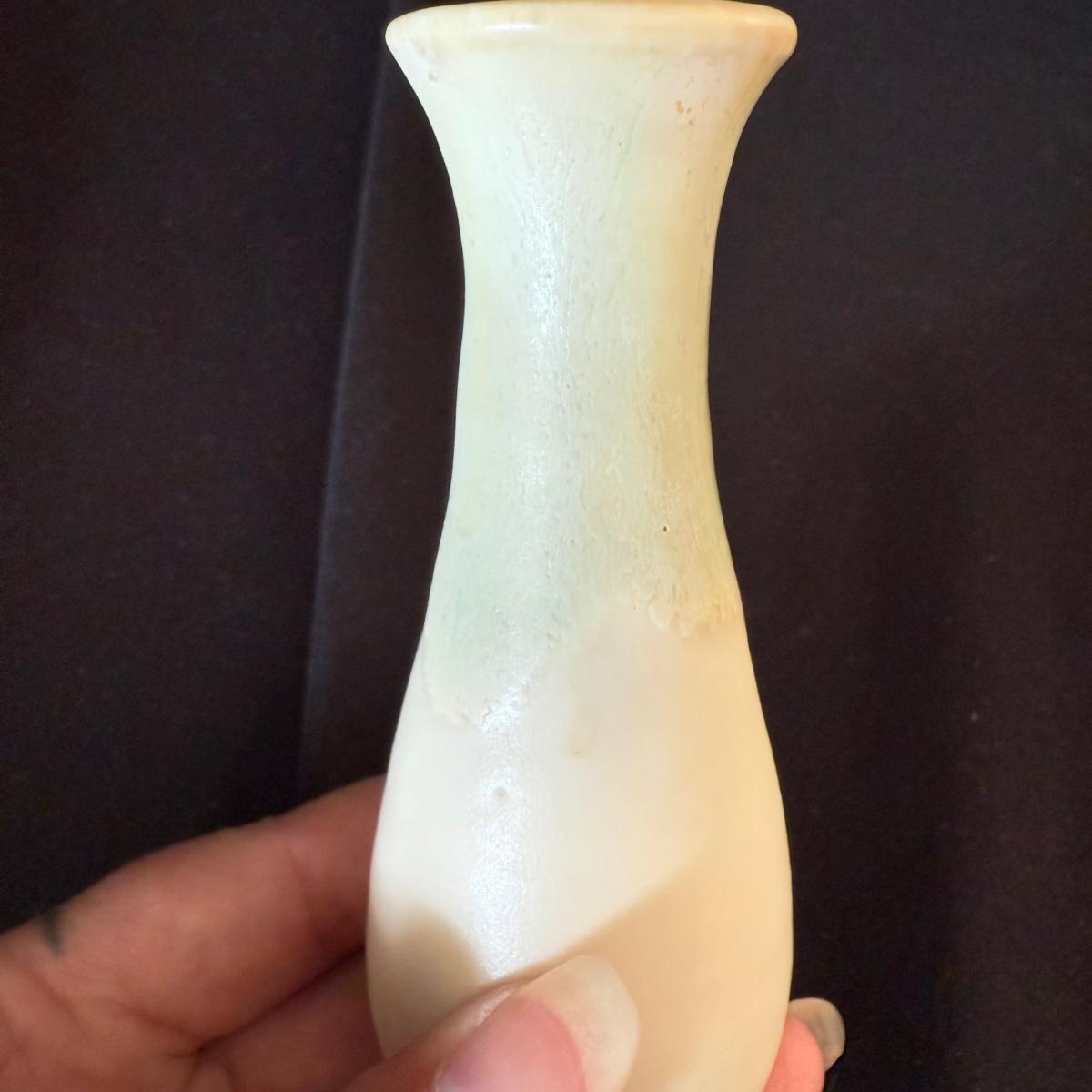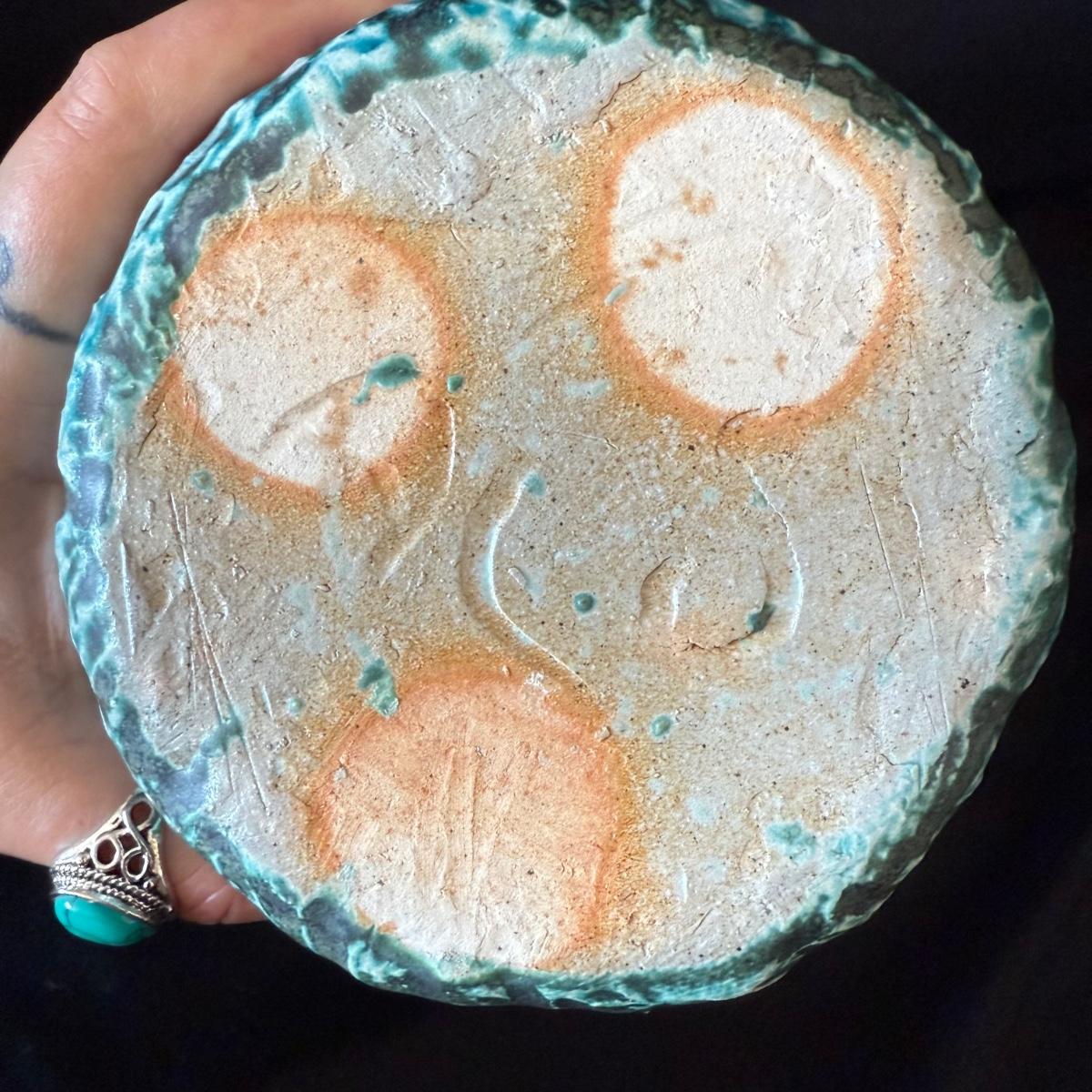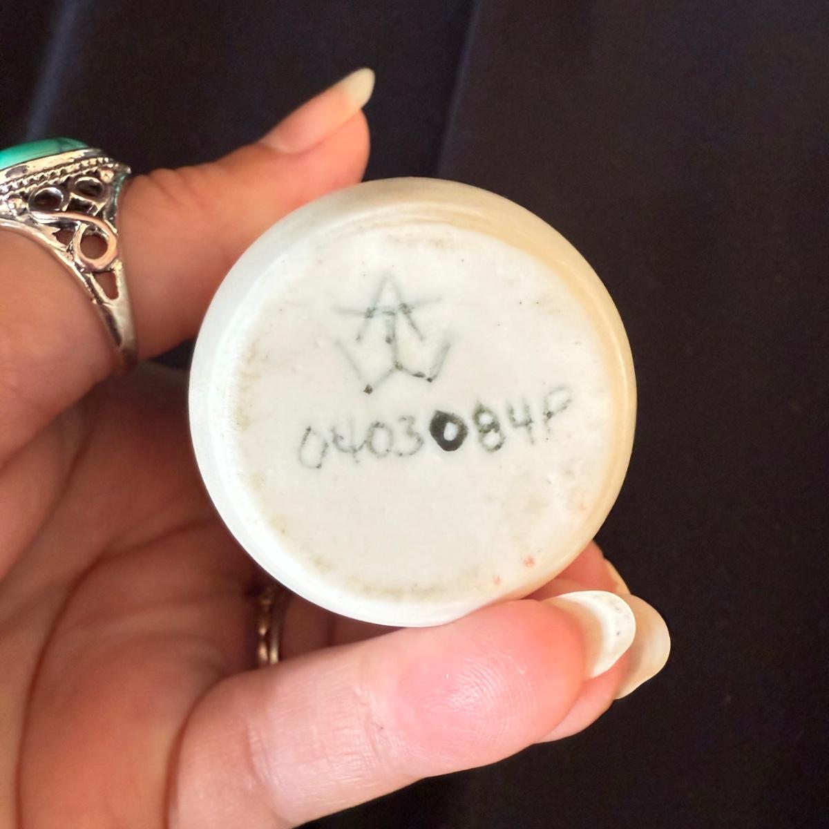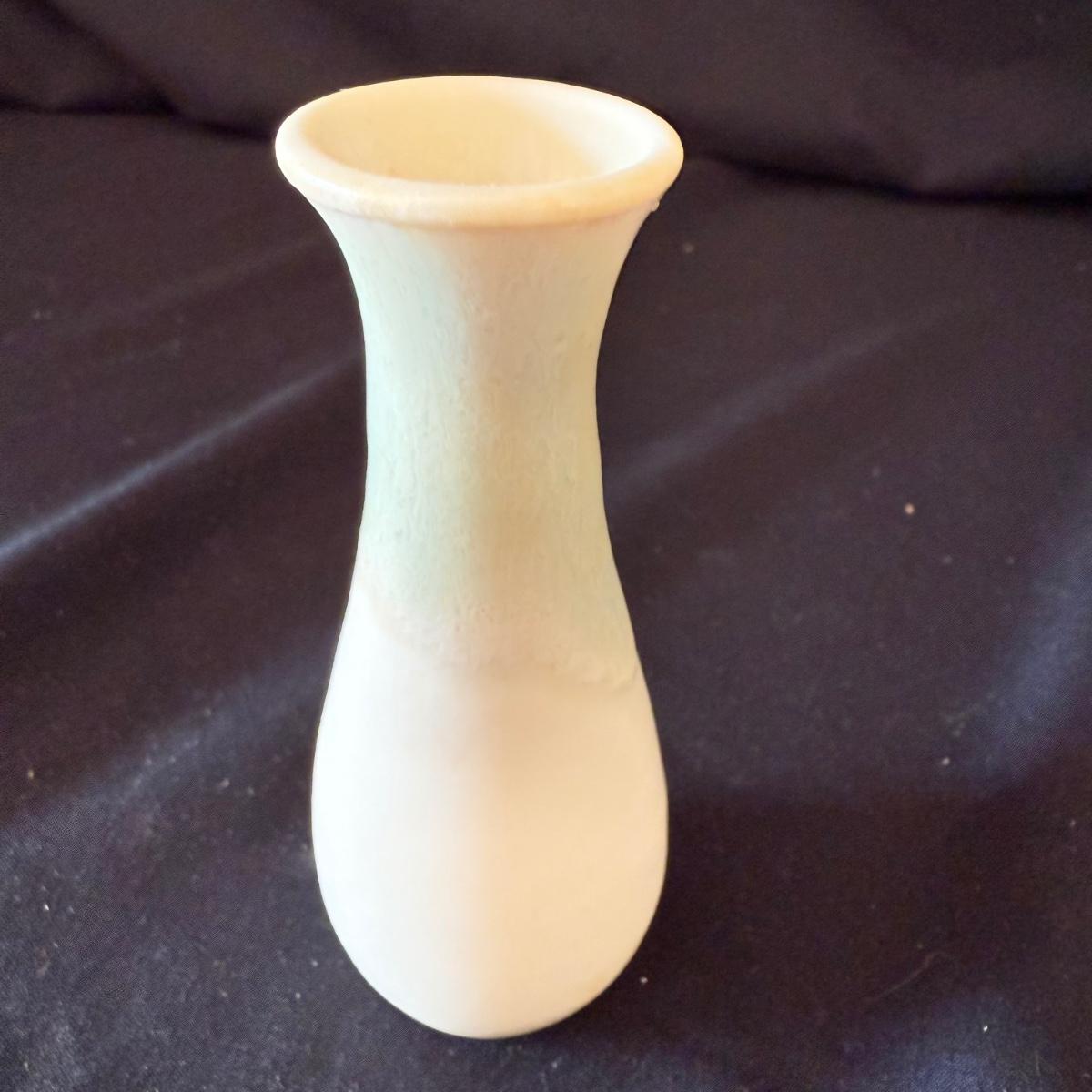 This lot contains a variety of seven different likely handmade ceramic vases. The largest piece is a chunky vase with a floral sculpture, deep etching and a teal and green glaze. This item measures 4.5”D x 6.5”H. Next is a soft teal round vase with a muted floral design. Moving on there is a soft blue minimalist bud vase designed by Jonathan Adler for ATA (Aid to Artisans) it is stamped ‘Adler for PB’ as well as ‘ATA’ on the bottom and comes with a small wooden stand. This item stands 5.5”H. Next is a brown vase with green leaves. This item measures 3.35” x 3.25” x 5.5”H and is signed “Dan’s Studio” on the bottom. Moving on there is a vibrant indigo bud vase likely signed by David Chohlidakis. Lastly, a small swirled teal pitcher and a precious tiny little bud vase with a gentle green glaze and texture around the neck of the vase. See pictures for details. Shipping available.
