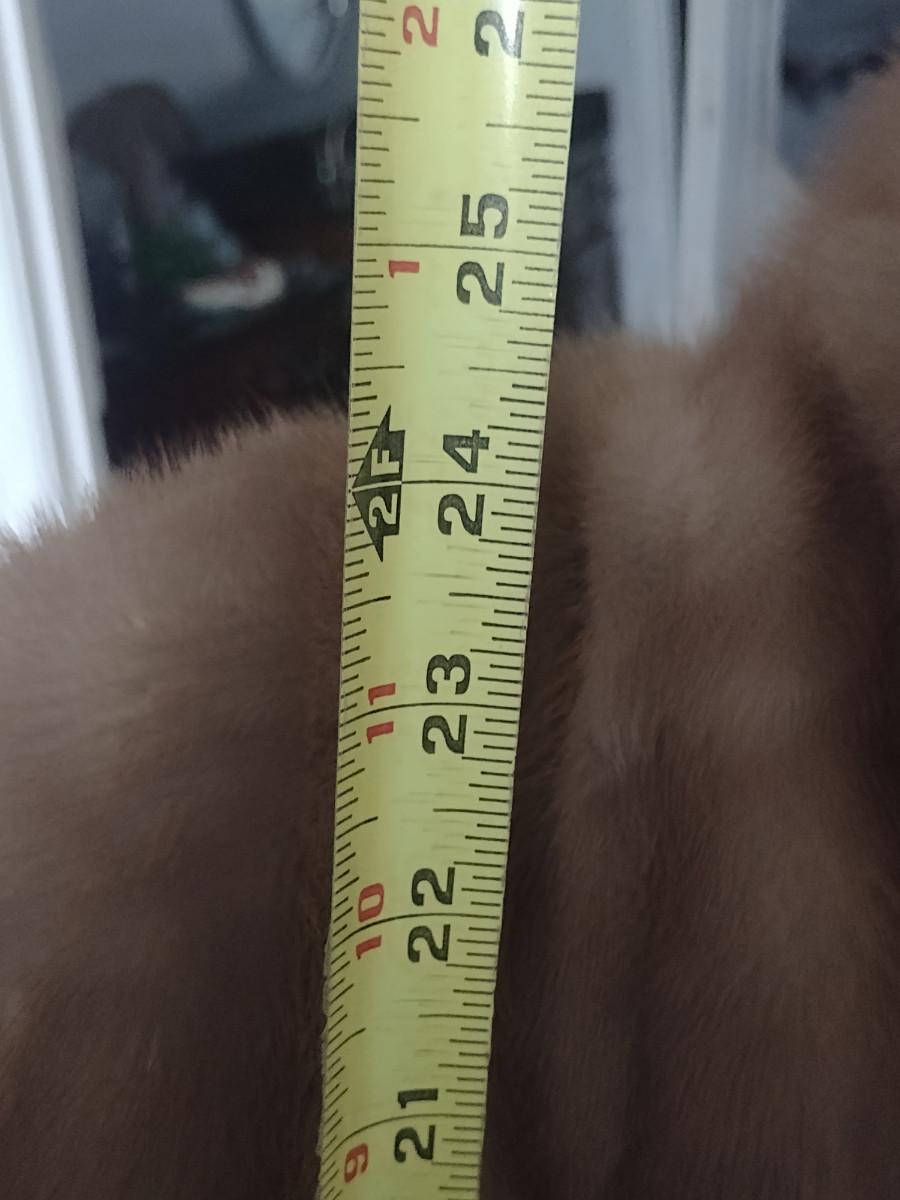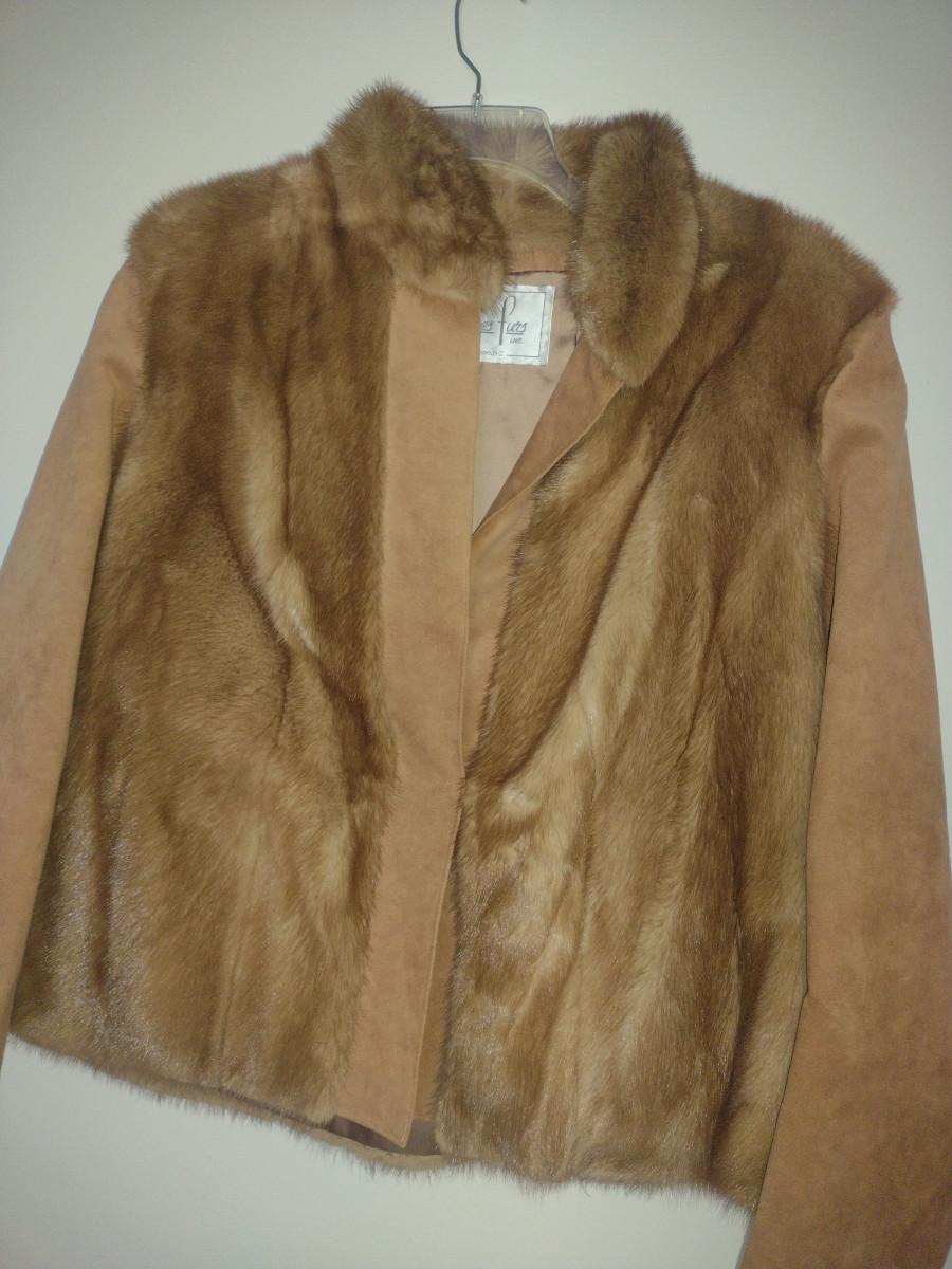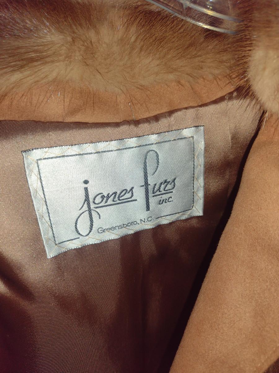 Jones Furs Ladies Coat with American Mink. No size found, but item measures approx 18" from shoulder to shoulder and 24" in length. Item has been monogrammed.