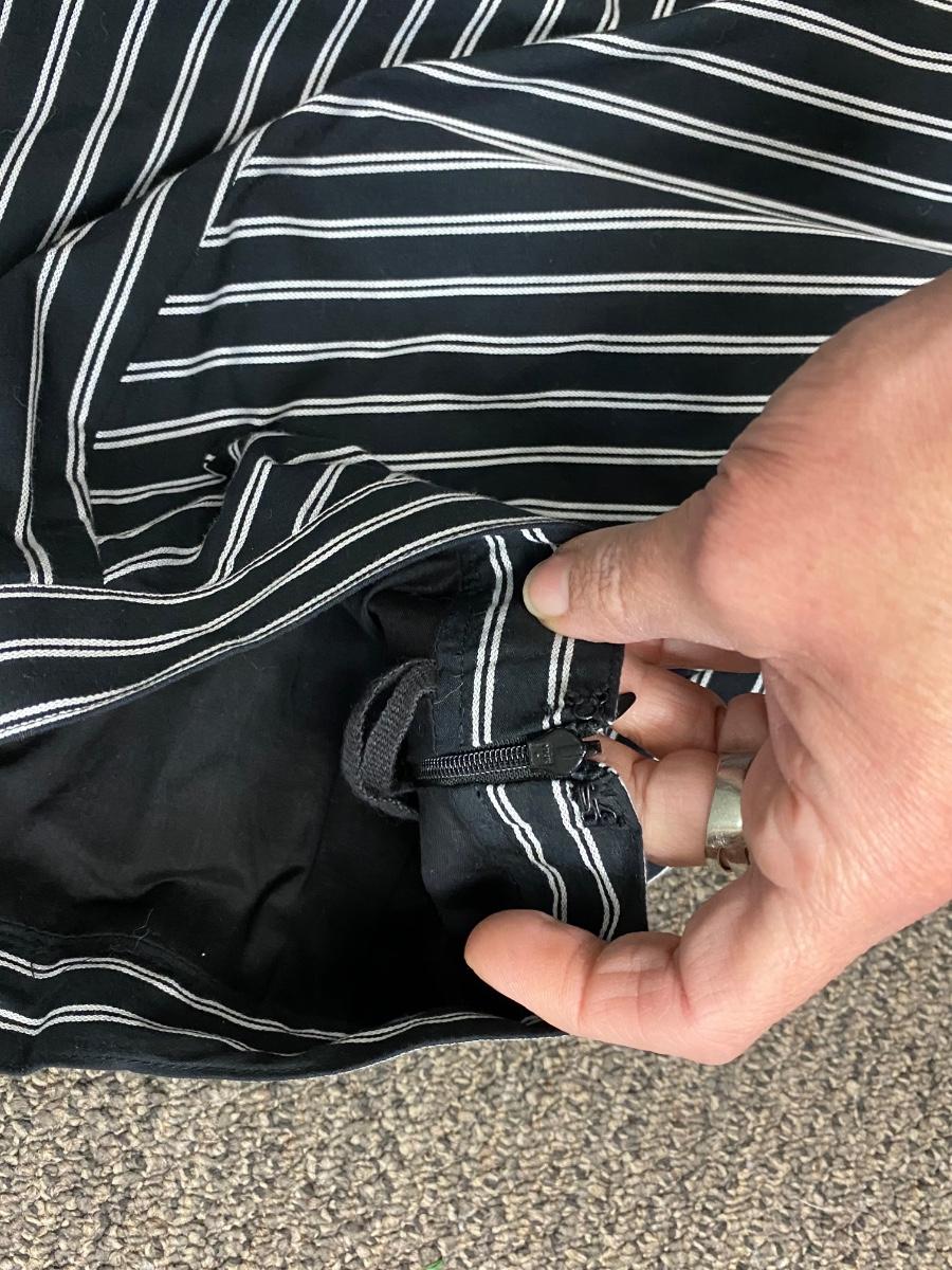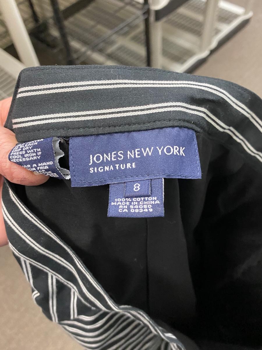 Jones New York Signature Black & White Striped Knee Length Skirt. In good condition. Zip closed. Size 8.