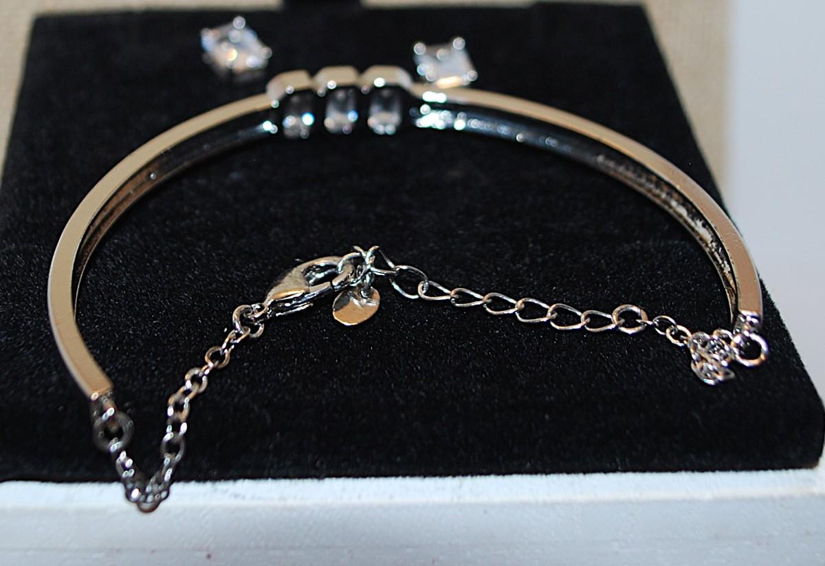 "Jones of New York" Half Infinity Bracelet (3" Circ.) with Lobster Clasp & Rectangle Emerald Cut Earrings with Stud Clasps Set