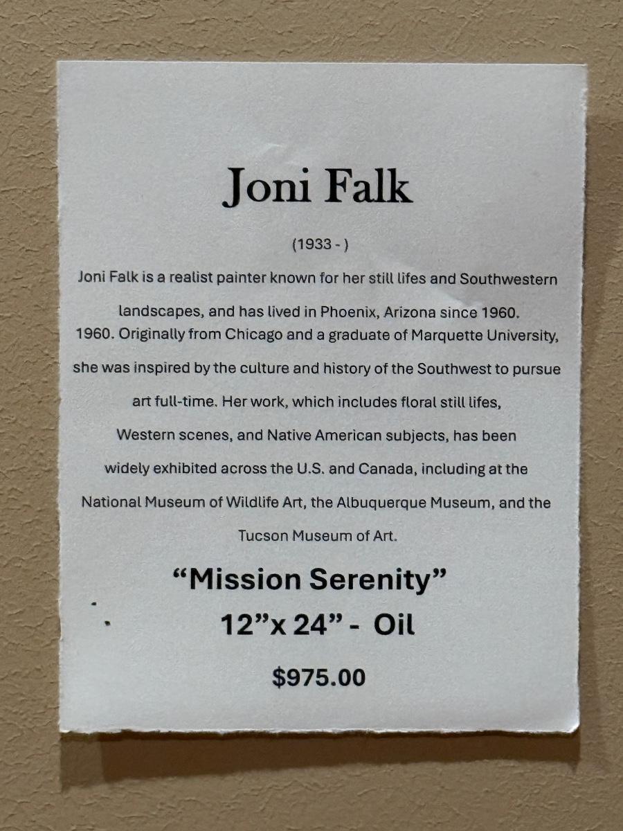 Joni Falk "Mission Serenity" 12x24 Oil ($975)