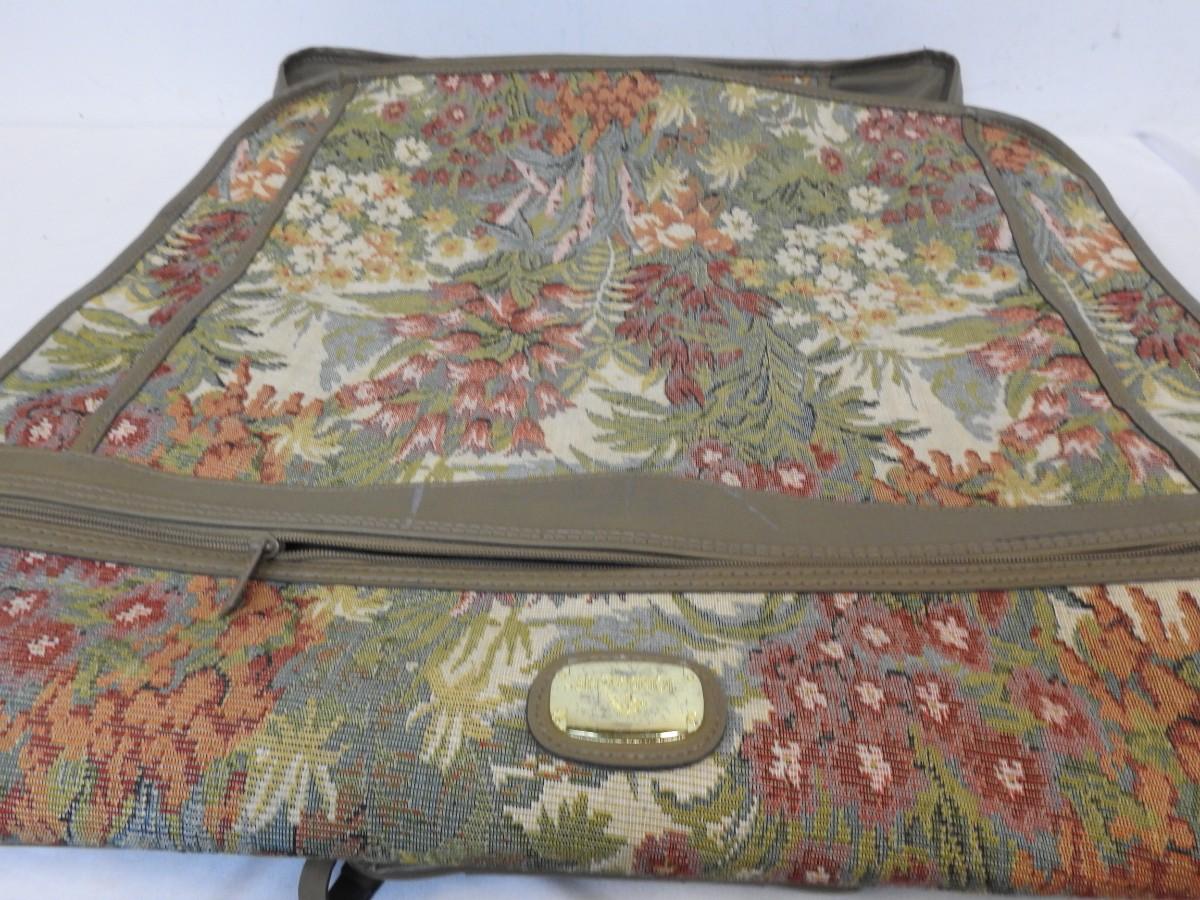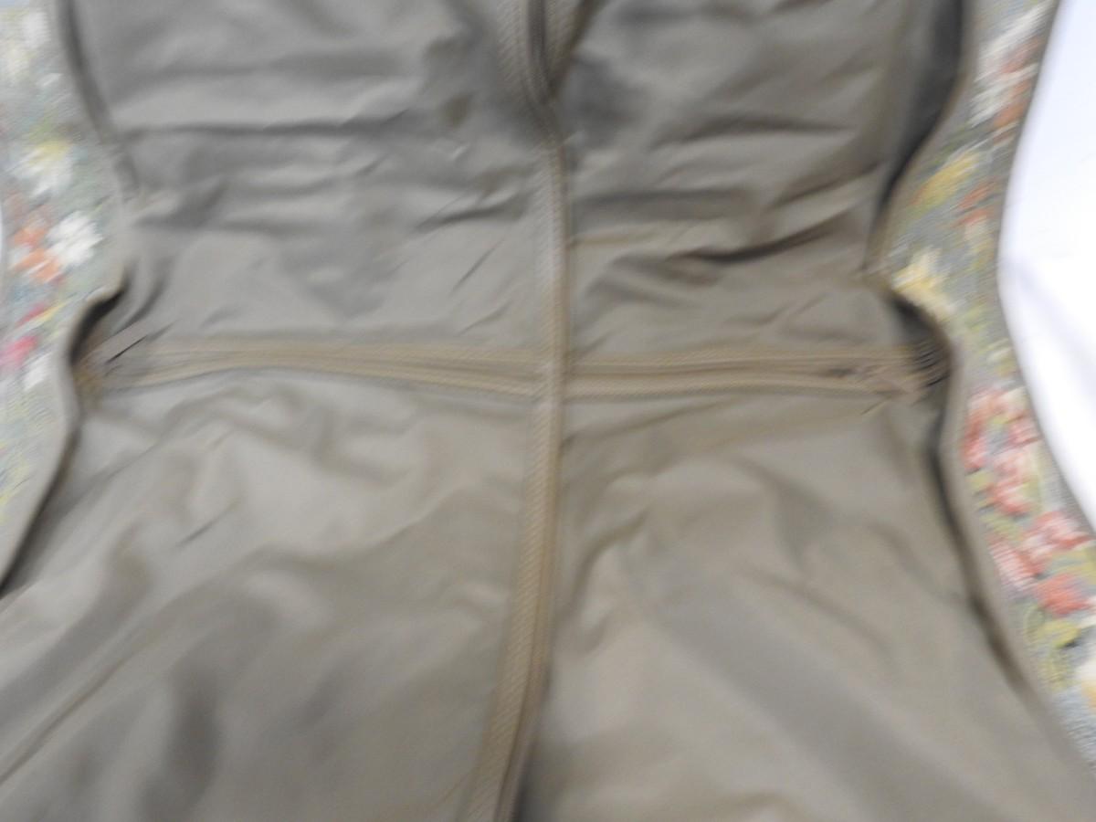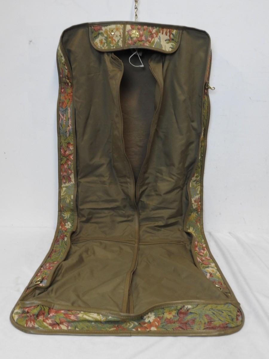 Jordache Tapestry Garment Bag, Several Pockets, Hanger, Folds To Make Compact