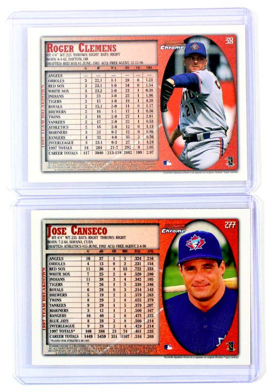 JOSE CANSECO + ROGER CLEMENS 1998 BOWMAN CHROME REFRACTOR Baseball Card Set MINT