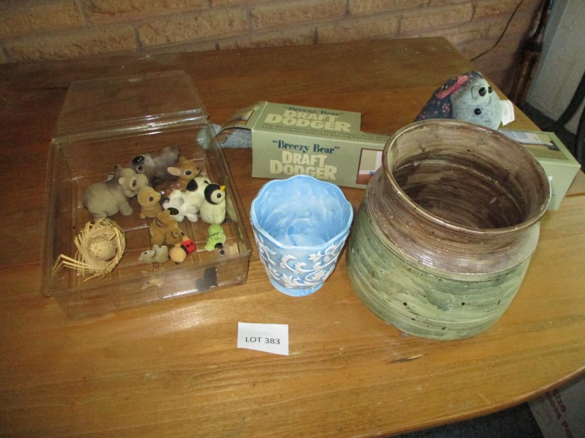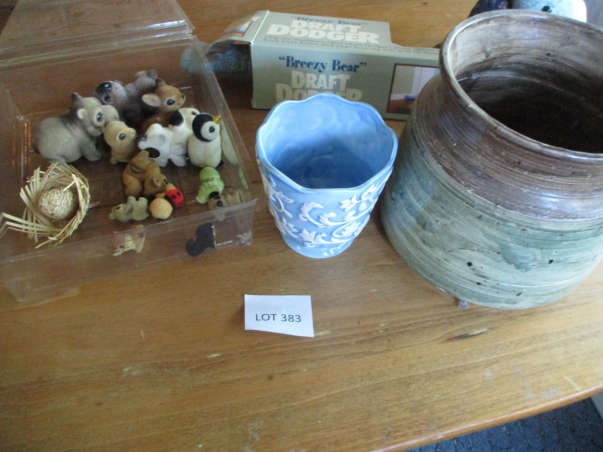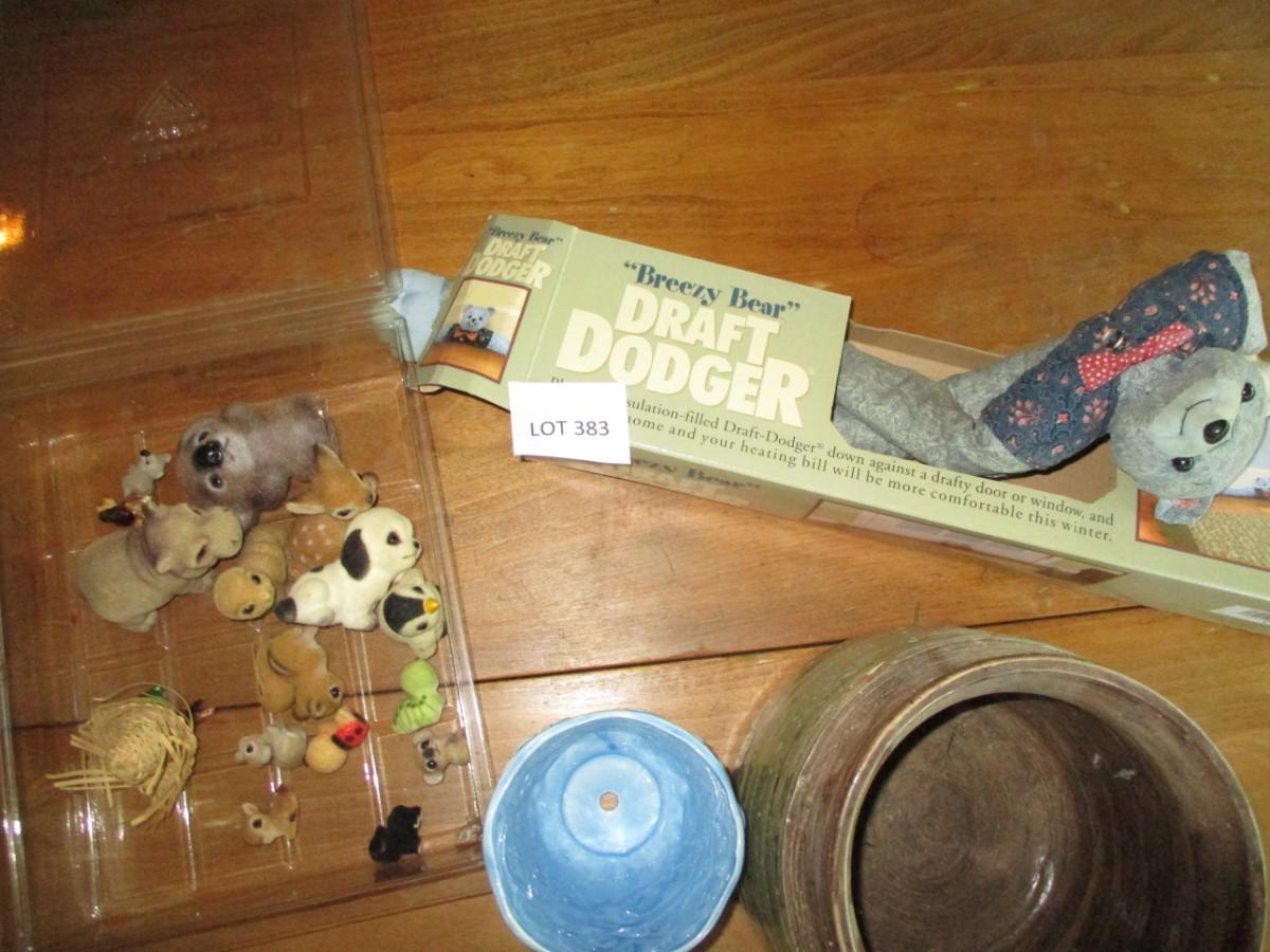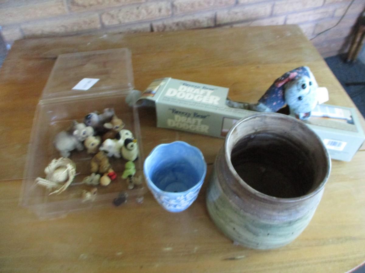 Clay pot, Sea miniatures- flocked animals Josef Originals. Puppy, seal, penguin bambi, hippo, squirrel, Draft Dodger.