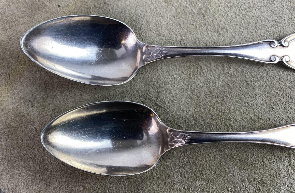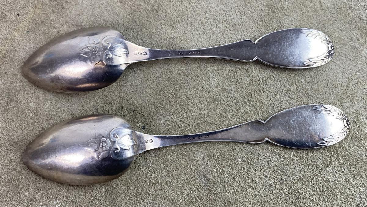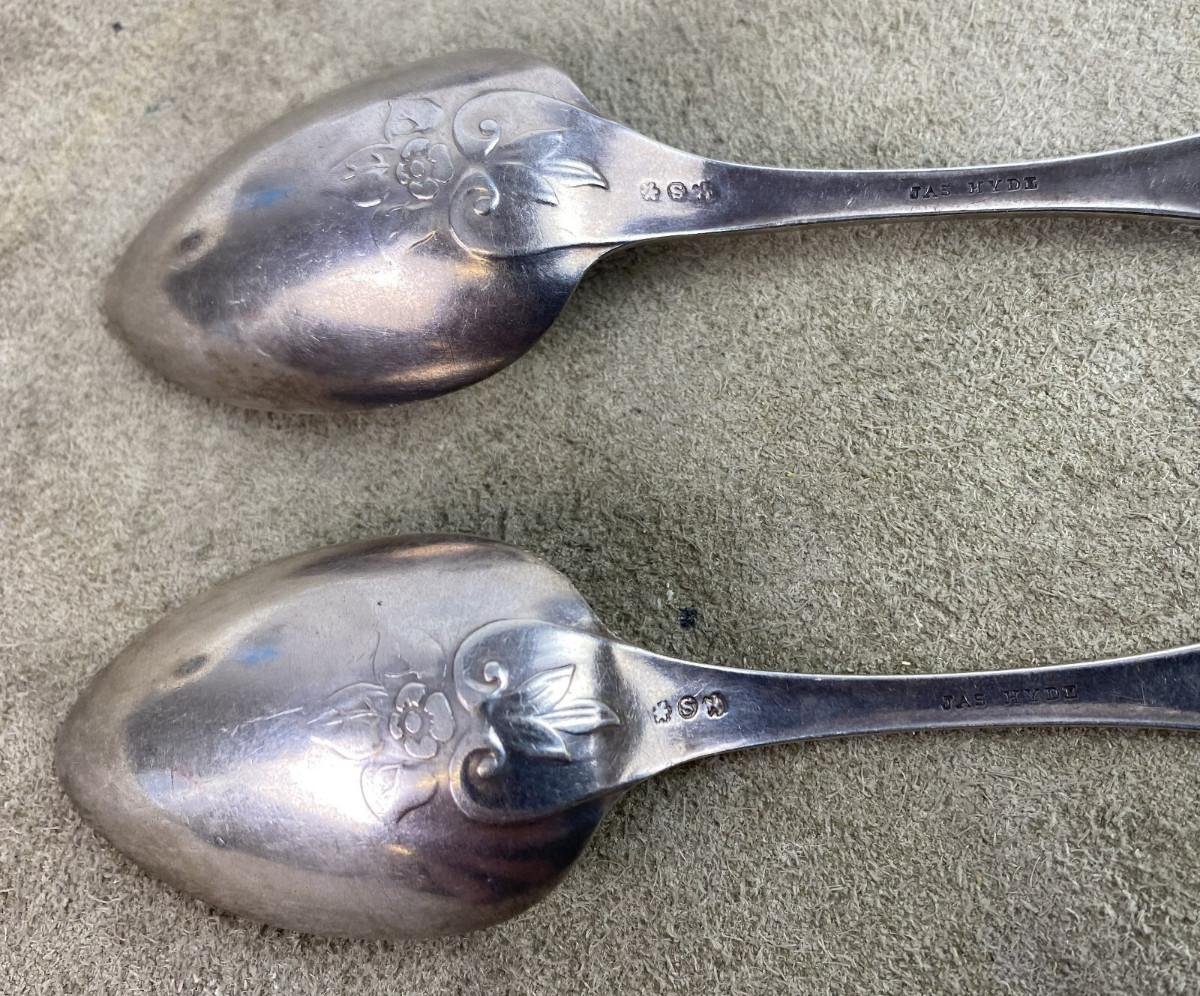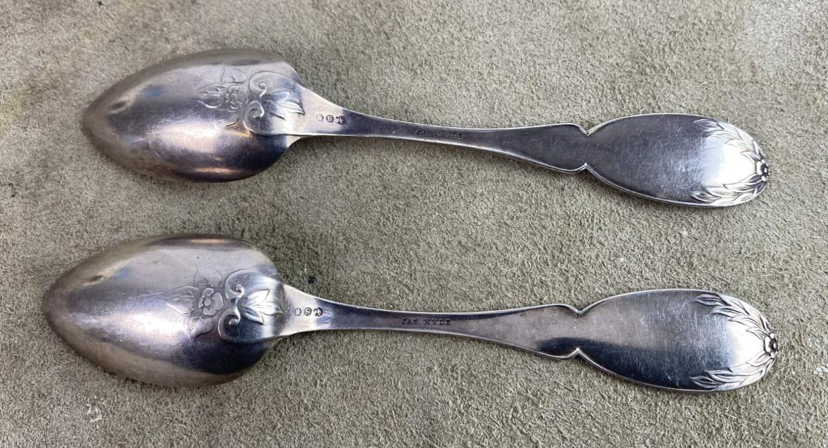 JOSEPH SEYMOUR WREATH 1854 COIN SILVER TEASPOONS pair