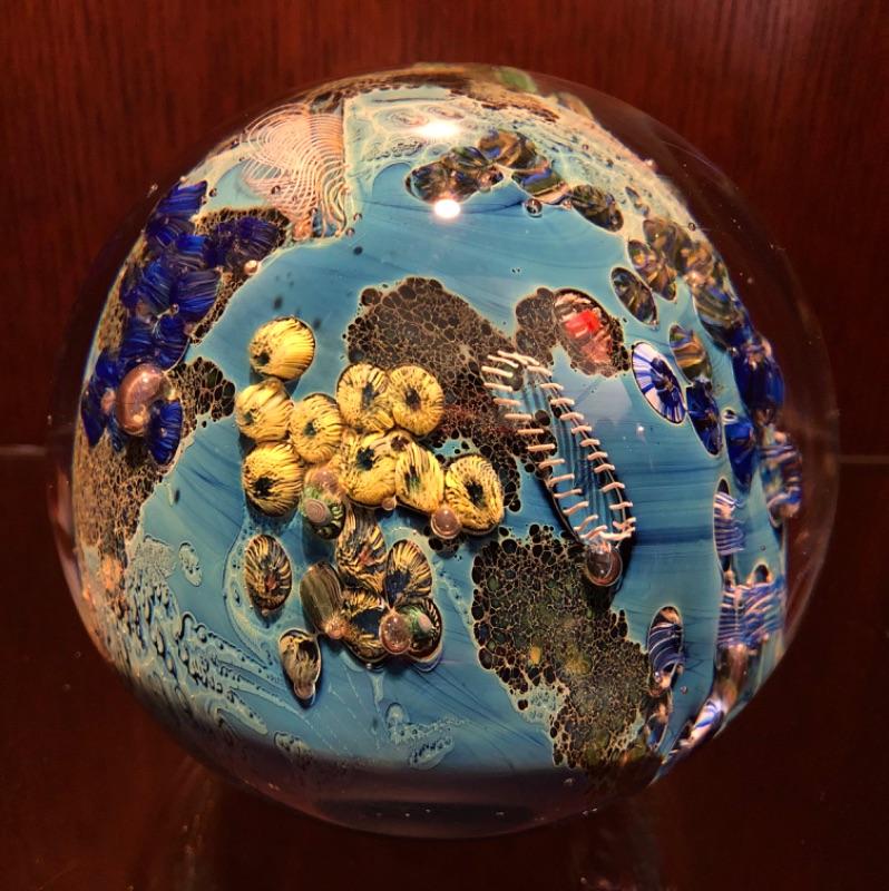 Exceptional piece of glass by Josh Simpson. Excellent condition, 4.25” dia.