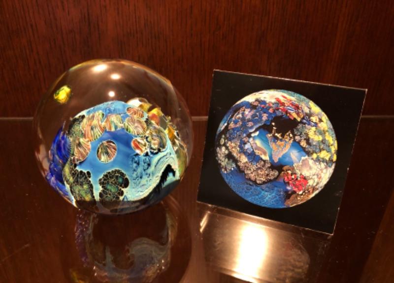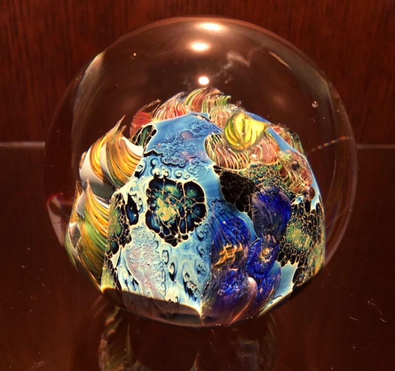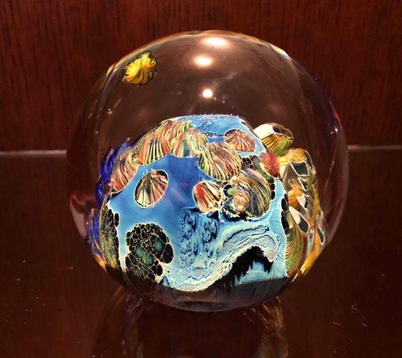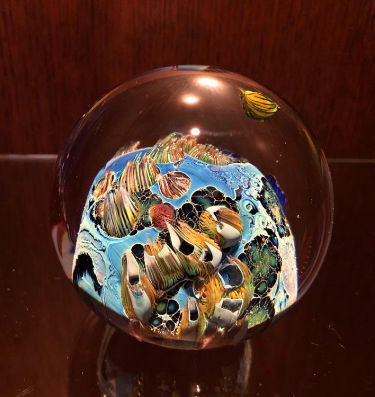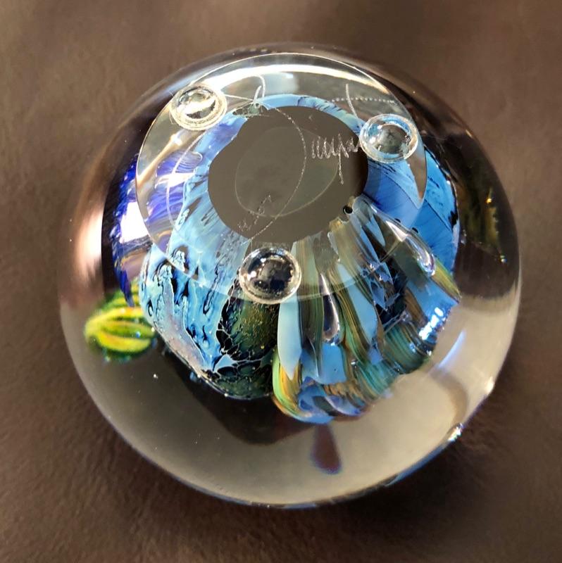 Beautifully detailed piece of glass by Josh Simpson. Excellent condition, 3” dia.
