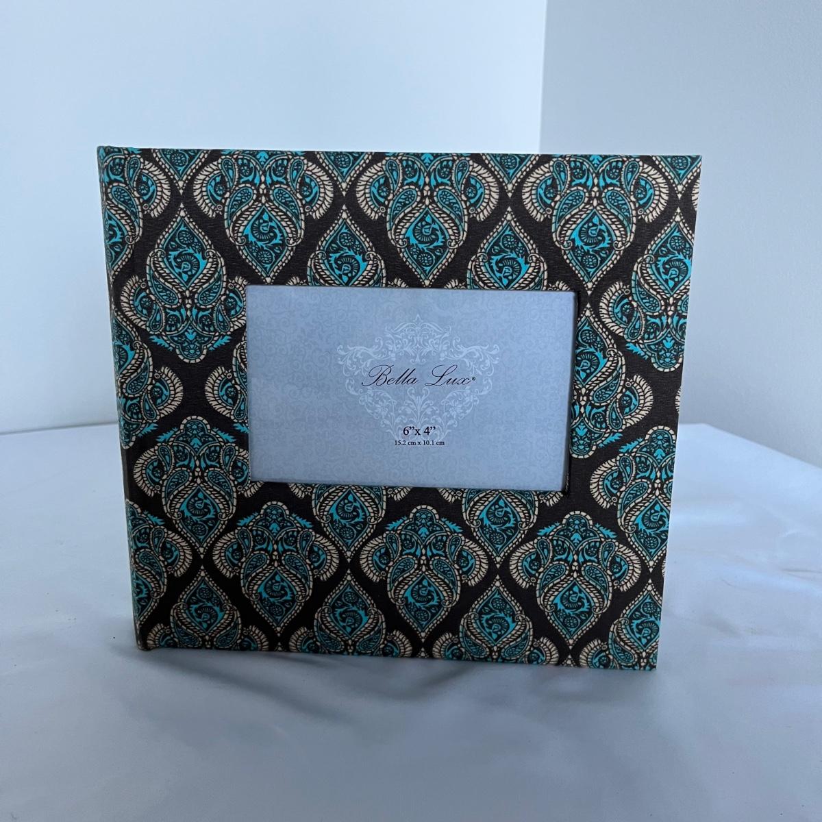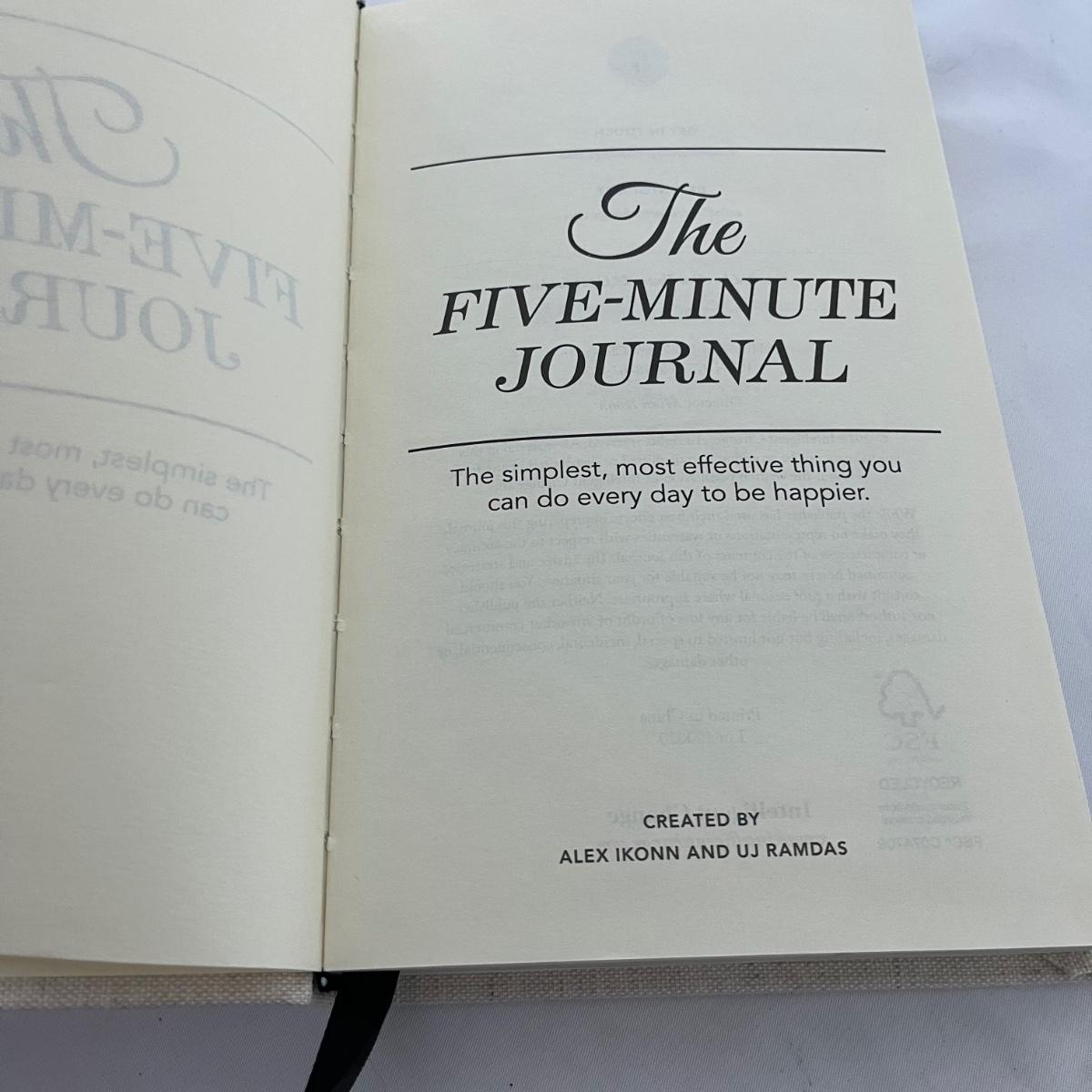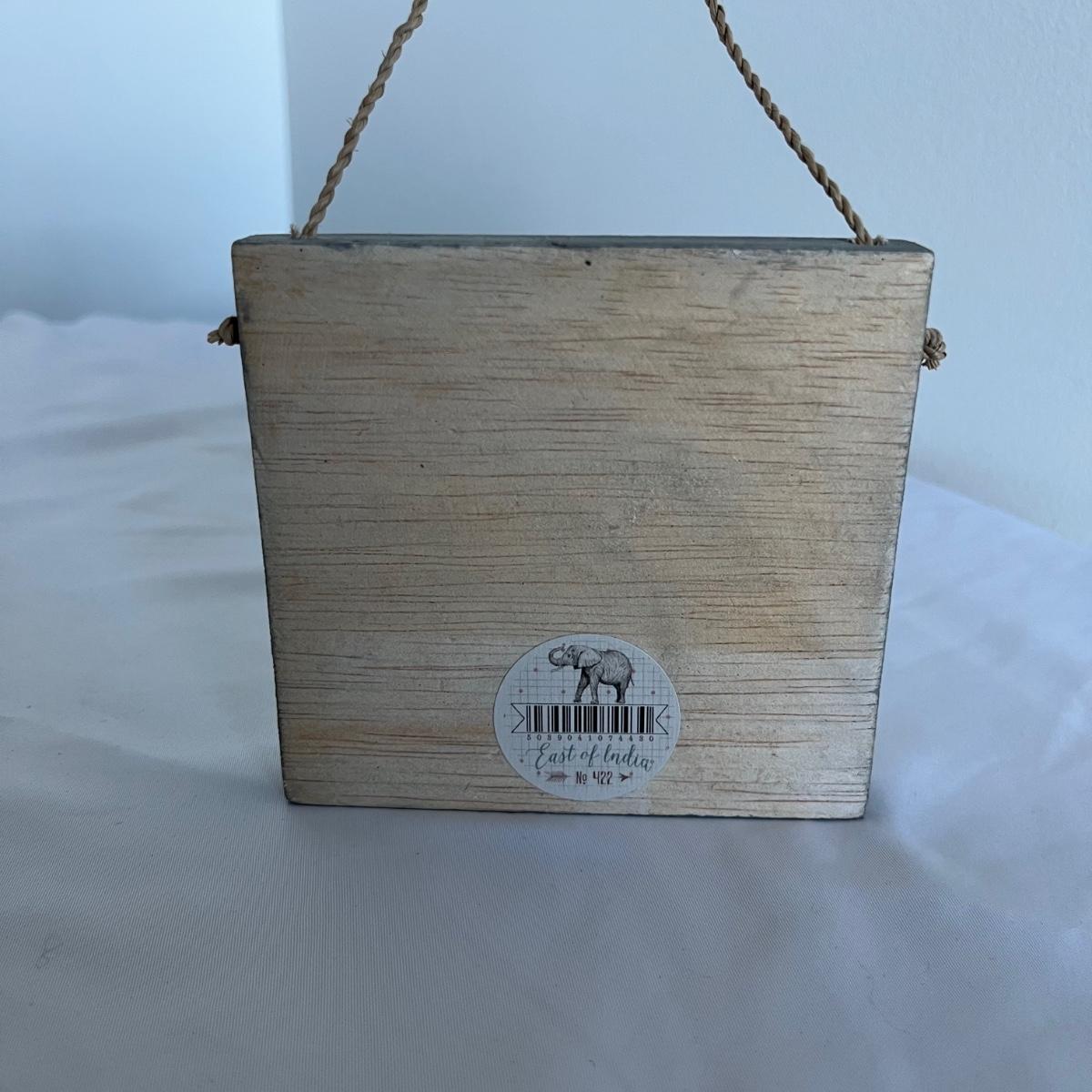 Lot includes a cloth-covered photo album, The Five Minute Journal, locally made blessing banner, metal dove ornament, glass heart, and a wooden keepsake that says "Family is where life begins and love never ends". Photo album measures 8.5” x 9.5” x 1.5”.