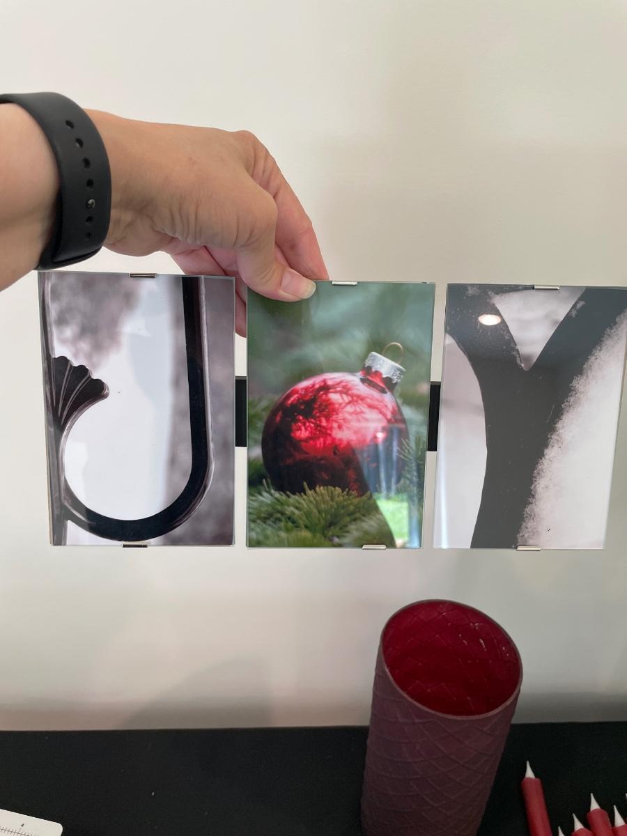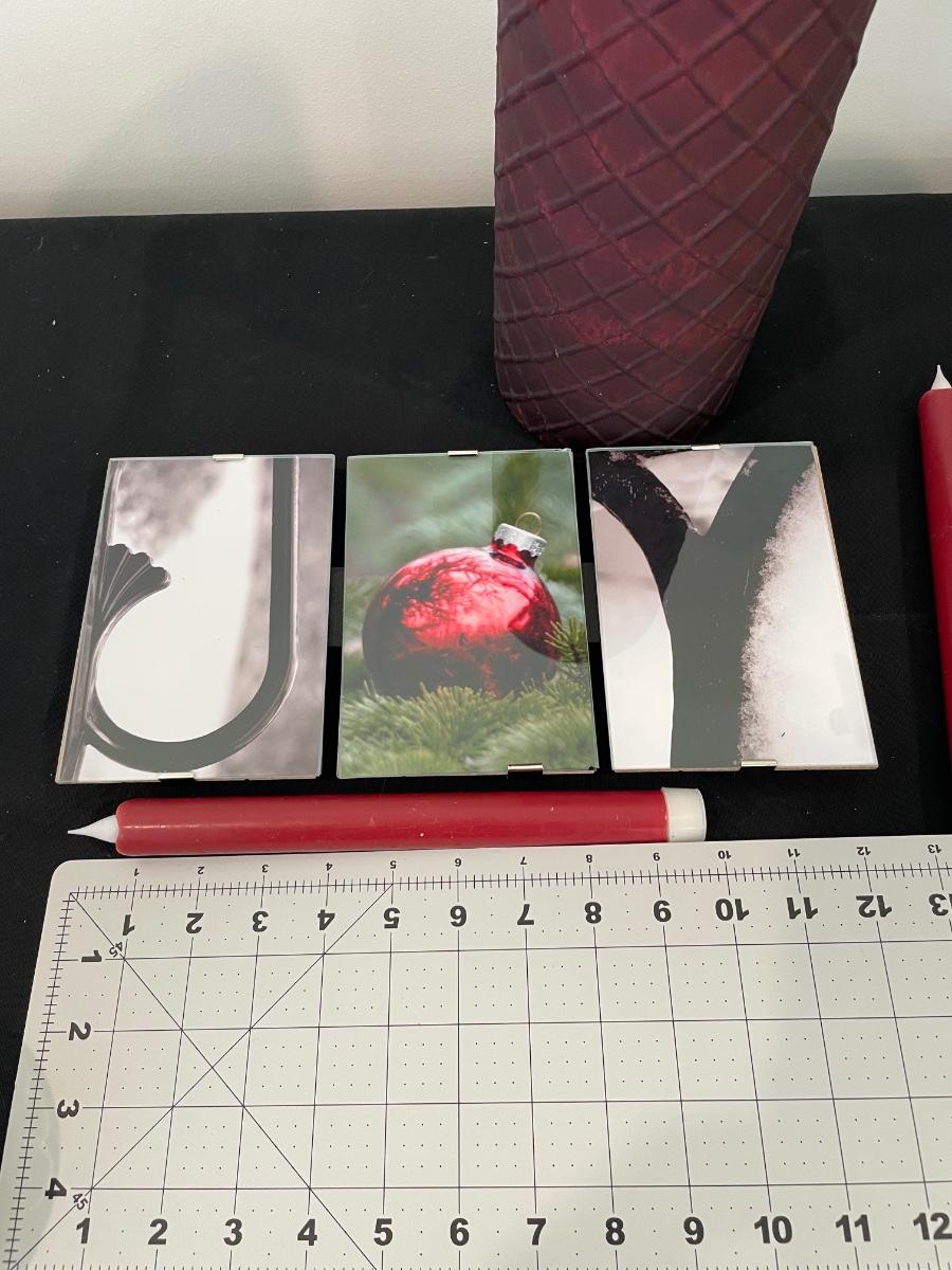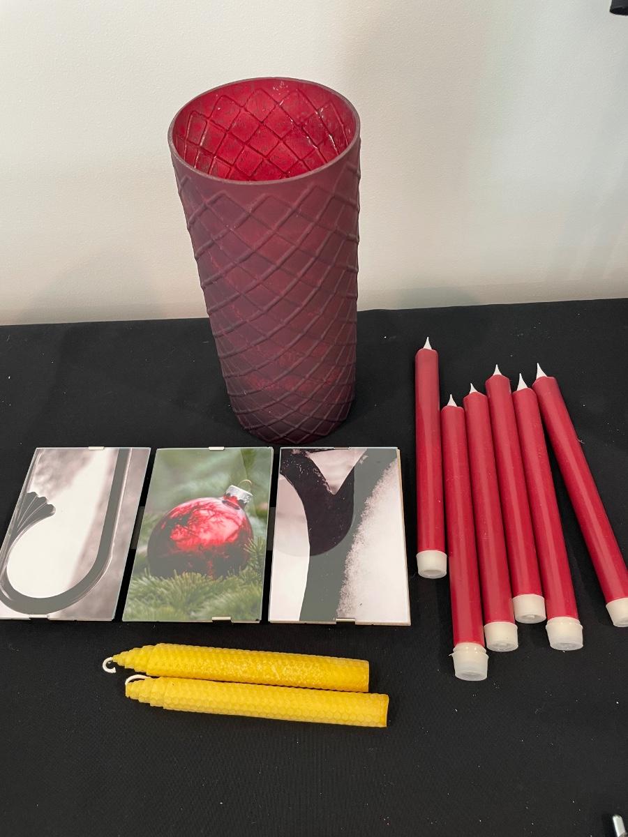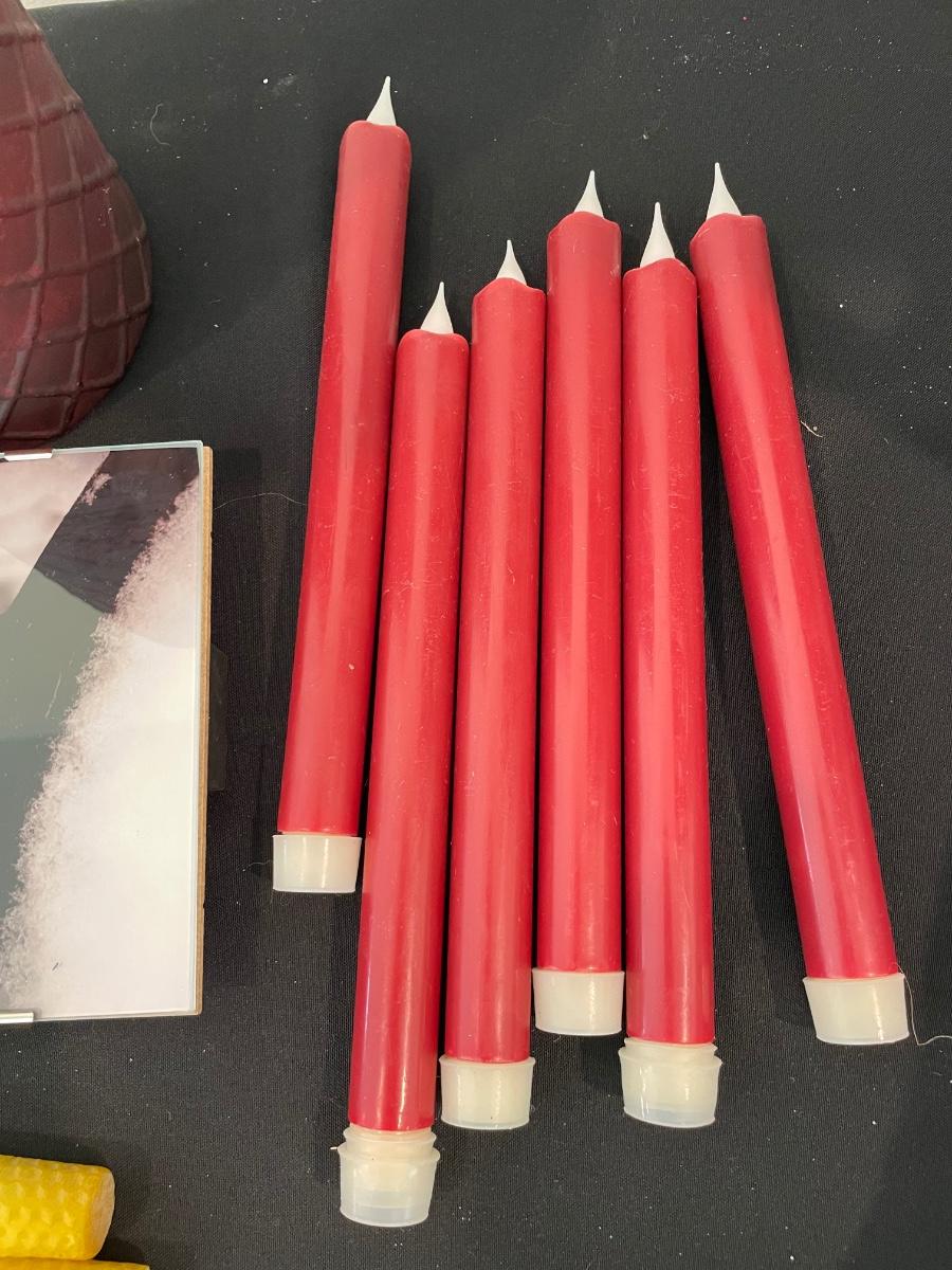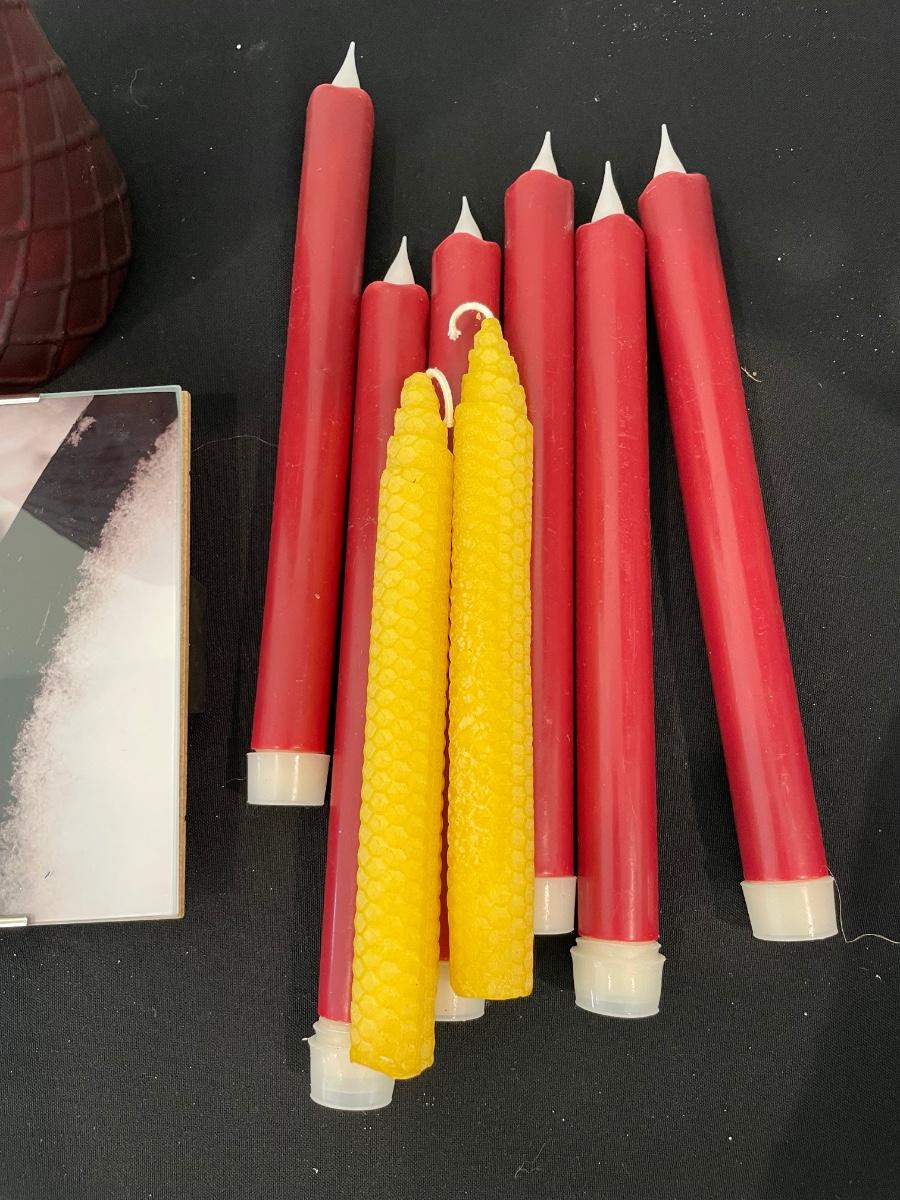 “Joy” Sign, Red battery operated candles, Beeswax candles