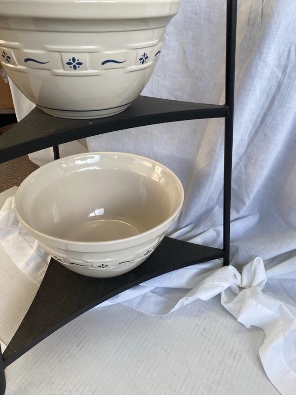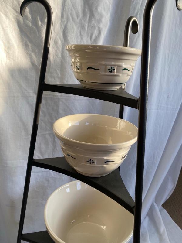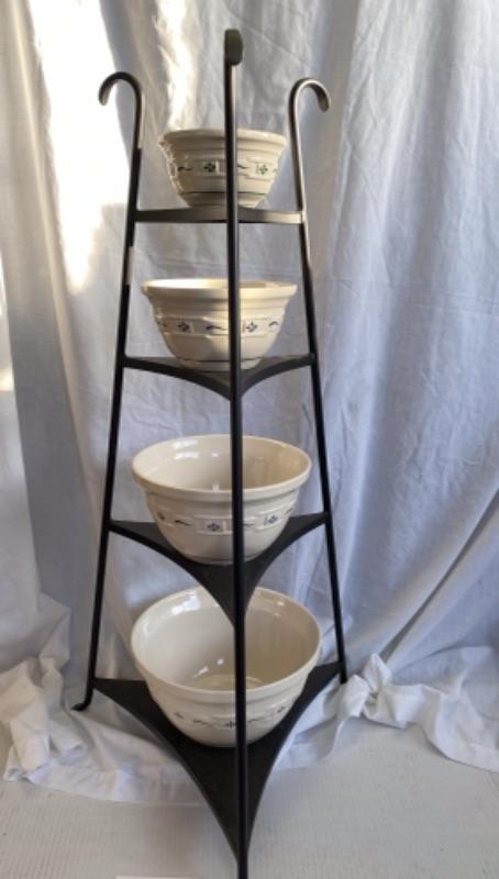 JQ - 344 Longaberger Wrought Iron 4 Shelf Graduate Stand with Longaberger Pottery Bowls