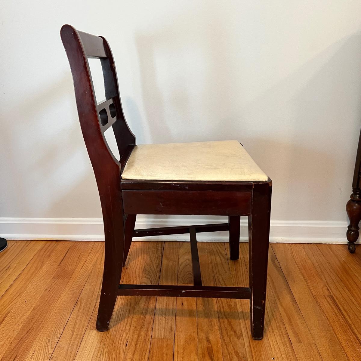 Cream colored leather seat. Some nicks and wear appropriate for age and use.
