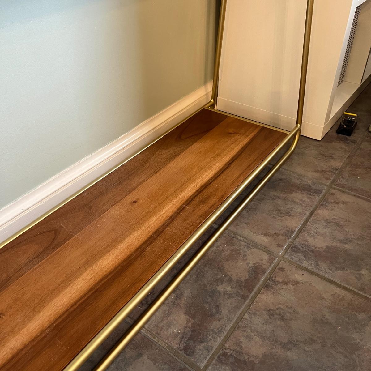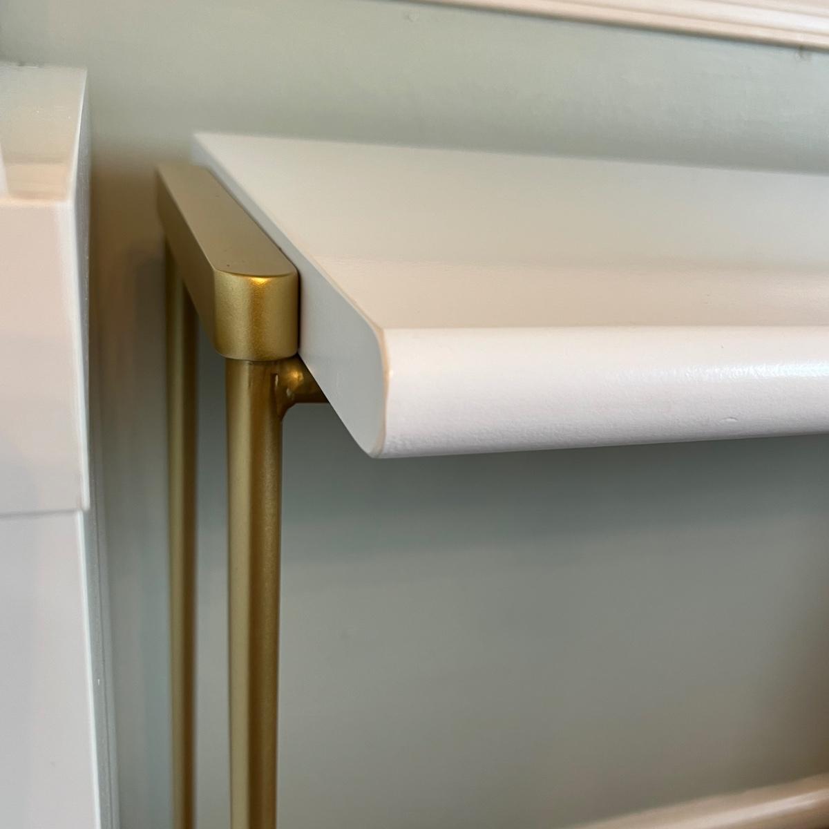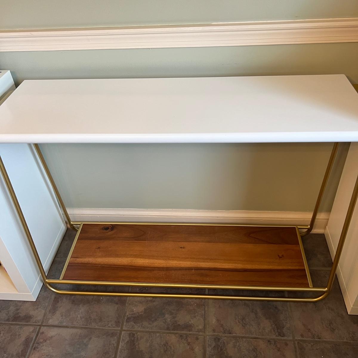 White Sayer Console Table Gold Metal Legs Wood Shelf