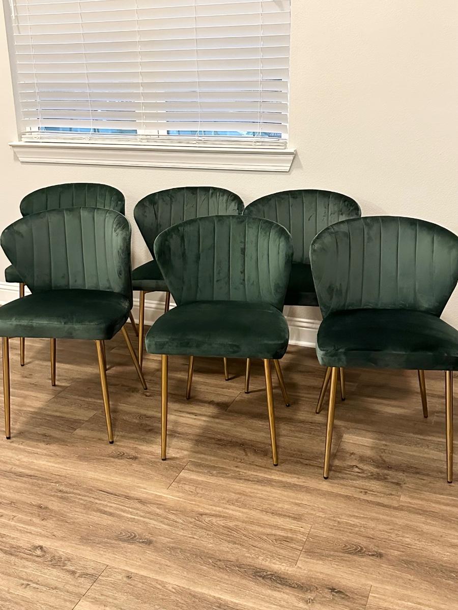 Six (6) Daulton Green Upholstered Velvet Chairs ~ Like New