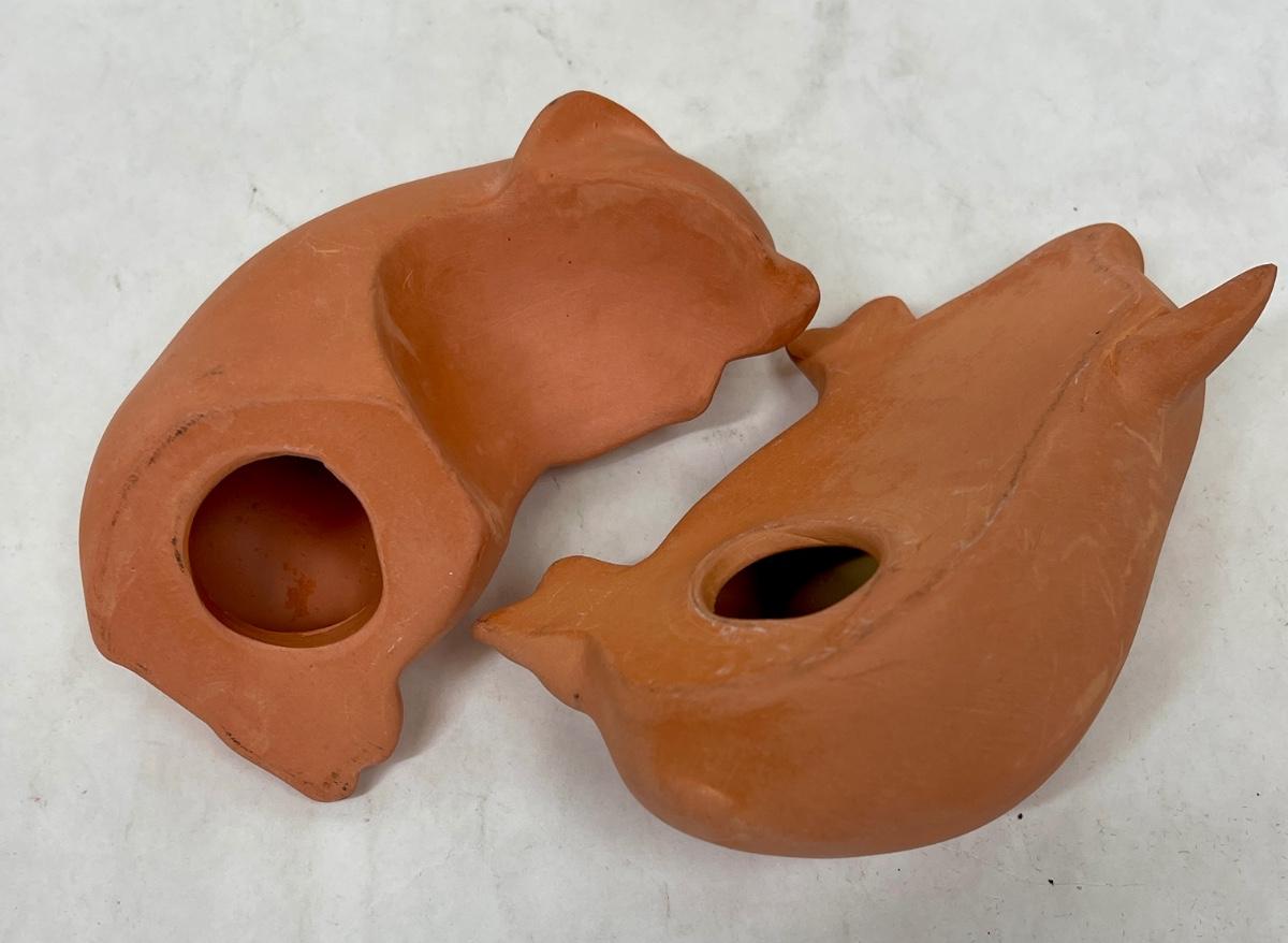 Approx. 4" long. 2 pieces, designed to nest together. Ready for painting or decorating. Perfect condition.