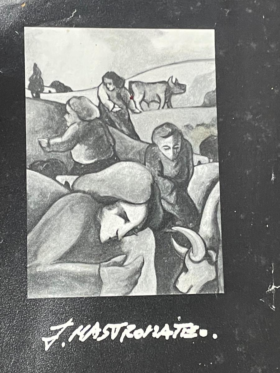 Juan Mastromatteo artwork featuring 3 people, blues & greens