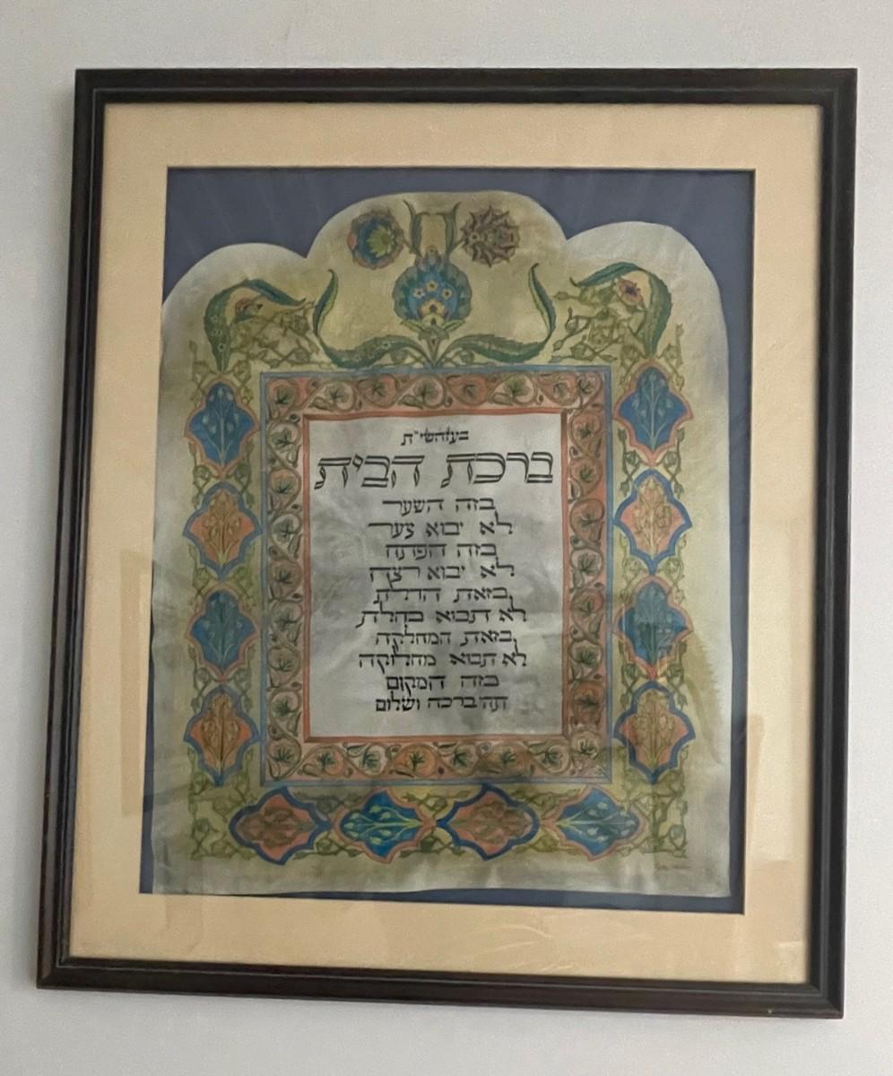 Description: Judaica Writing with floral border Lithograph; Framed Measurement: 33 x 28; Subject Measurement: 25 x 20.75