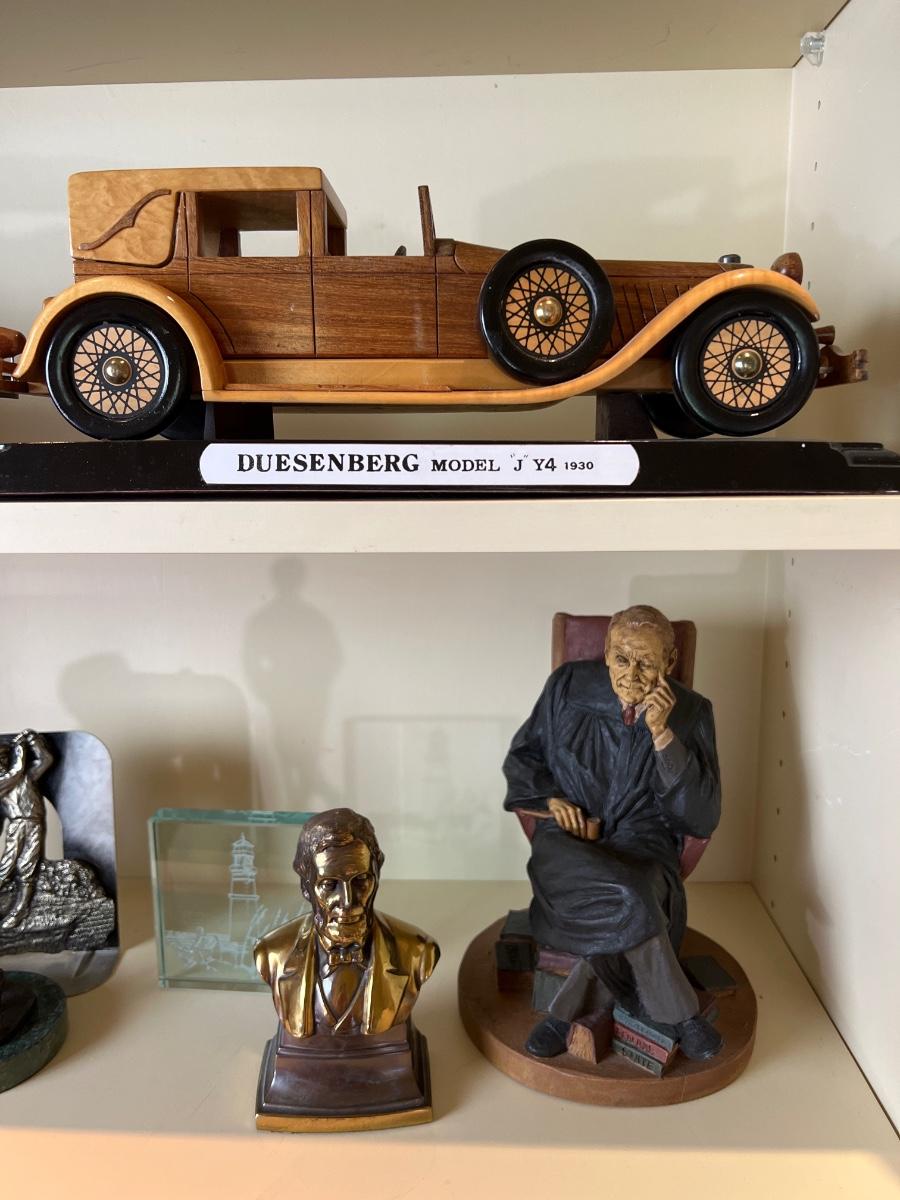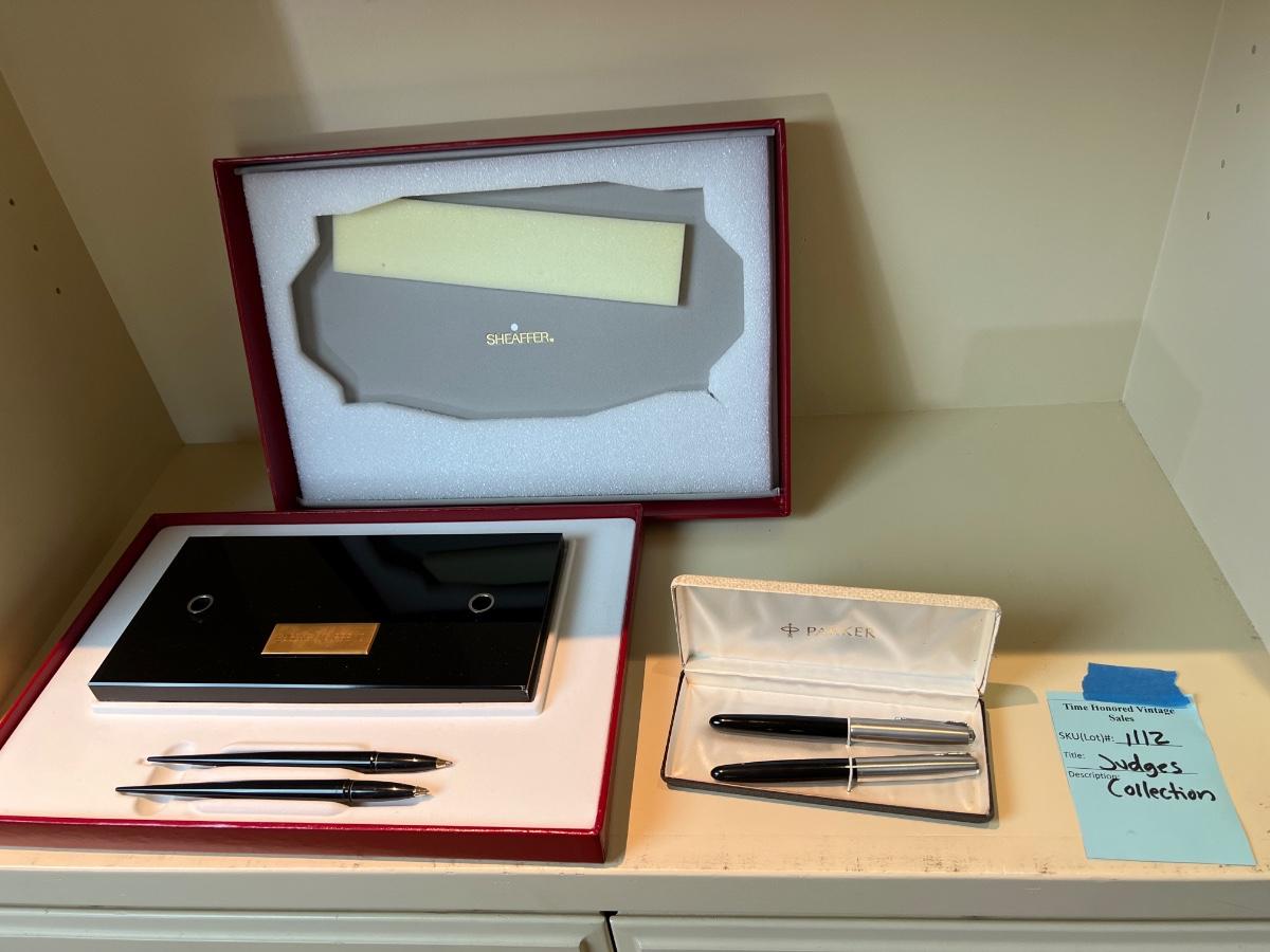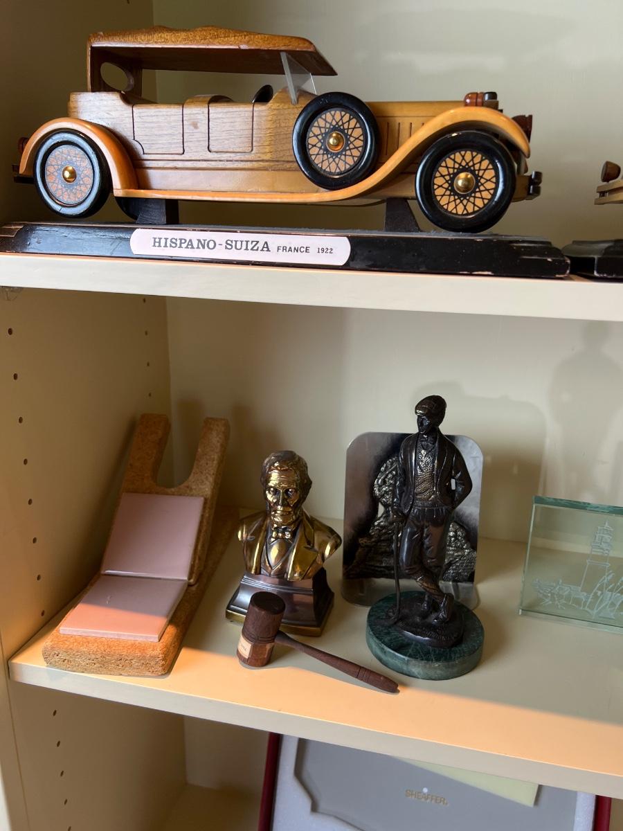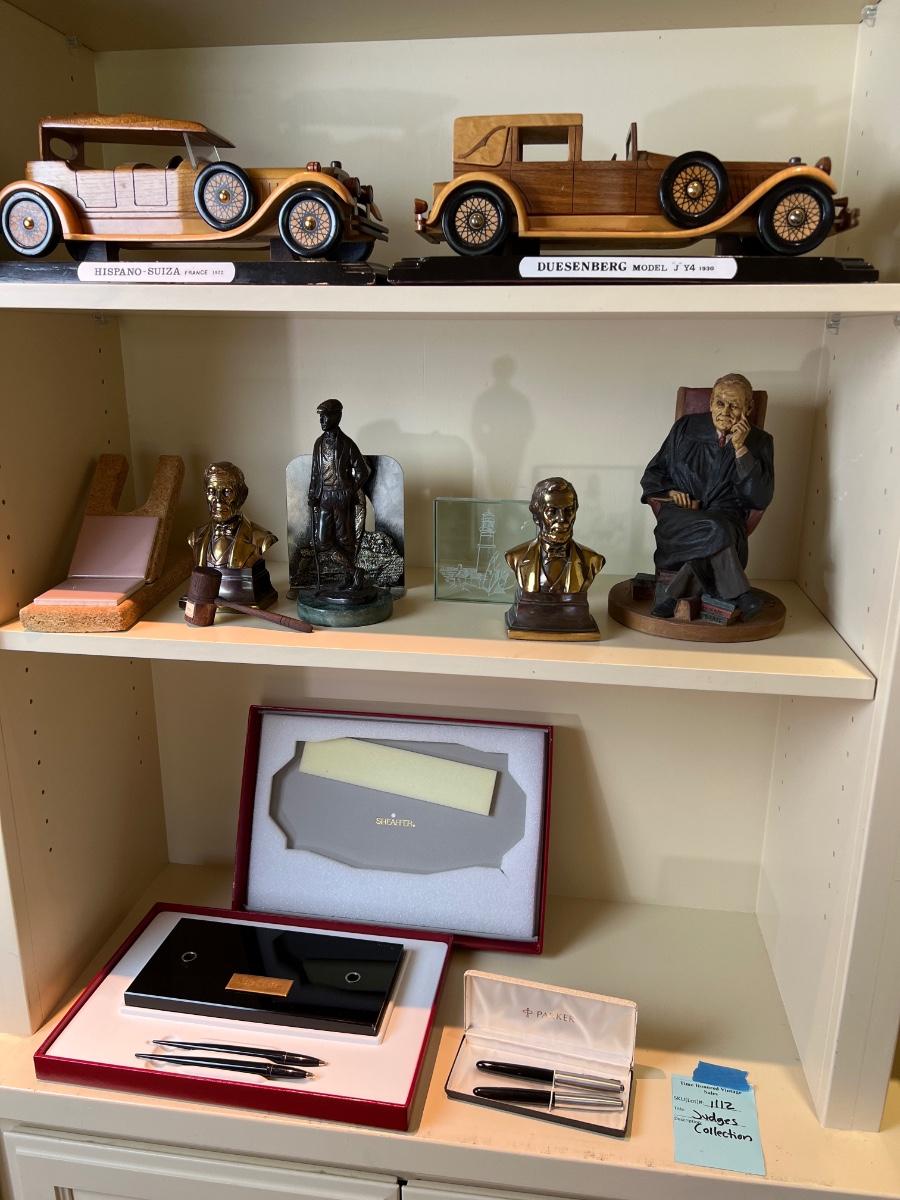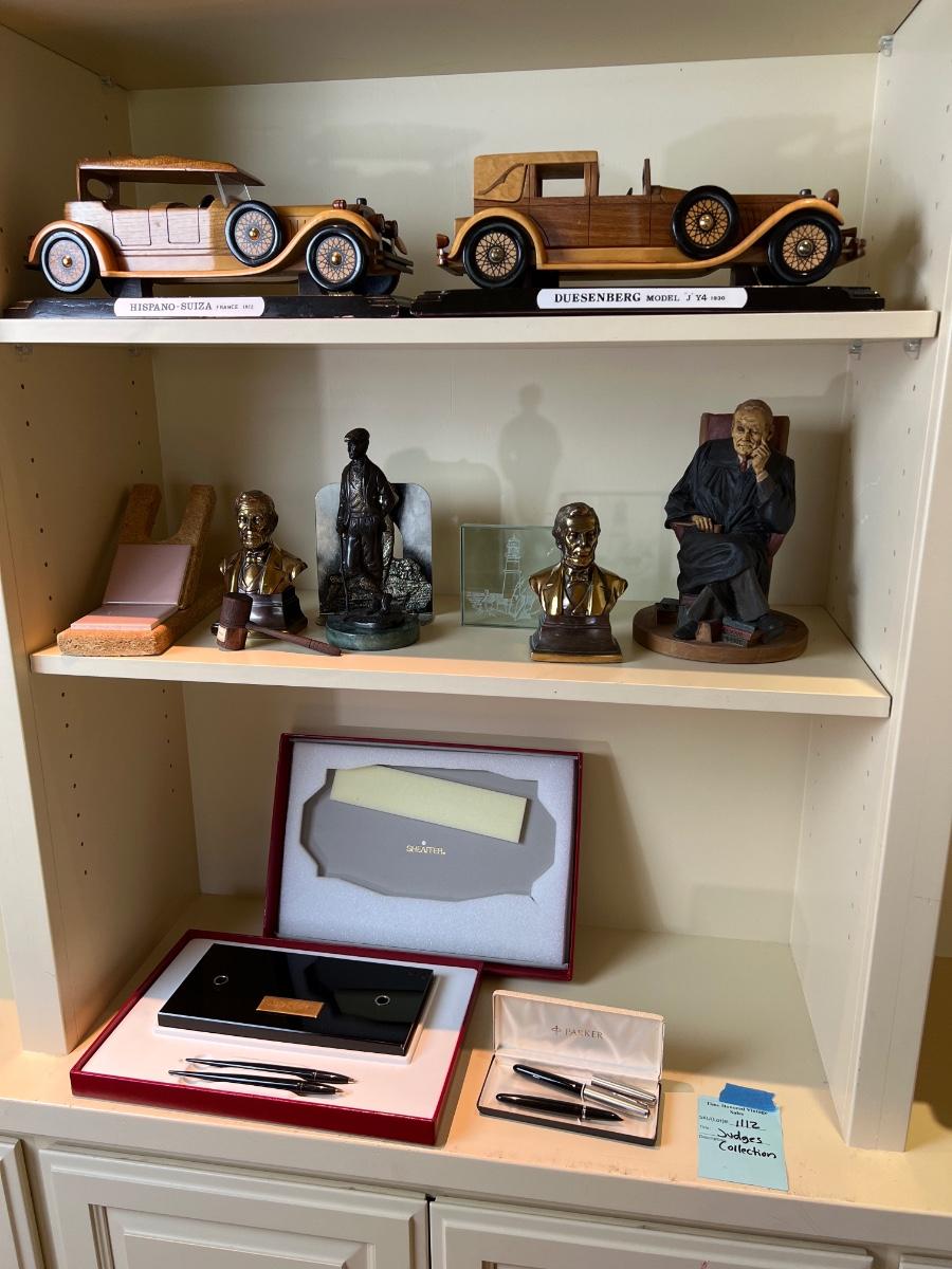 Pen sets Sheaffer Parker, judge statue, Model cars. Golf statue, 1 book end
