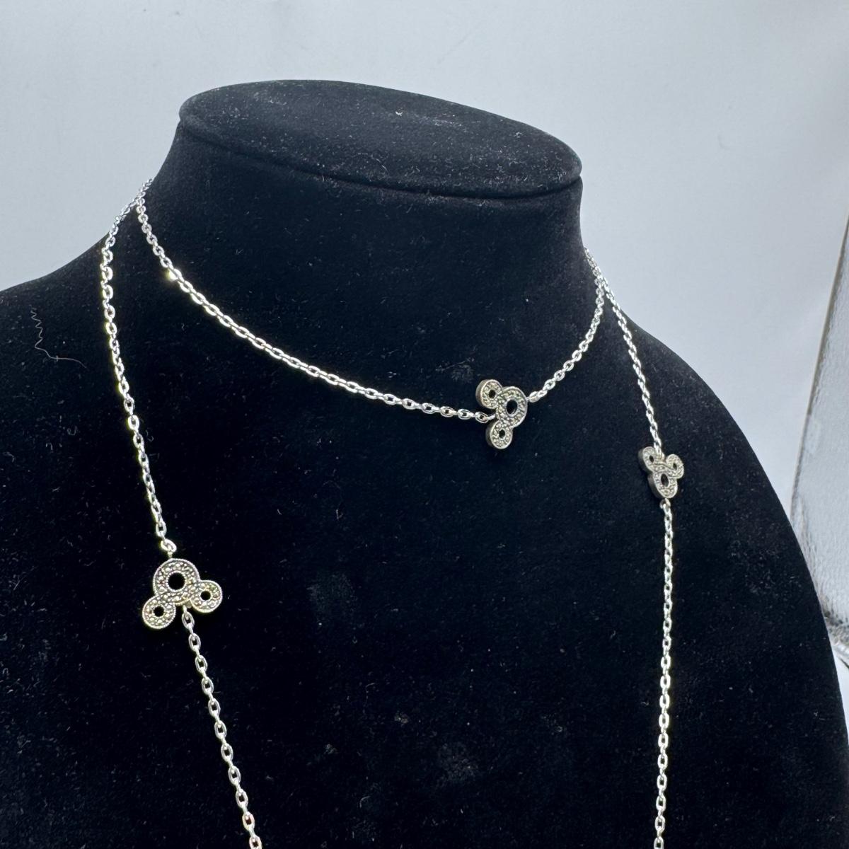 This lot includes one long marcasite necklace made by Judith Jack and one gold and silver-colored Walt Disney watch with Mickey Mouse on the front. The necklace measures 19” long. All sales are final. No returns or refunds. Please bid accordingly. Shipping available.