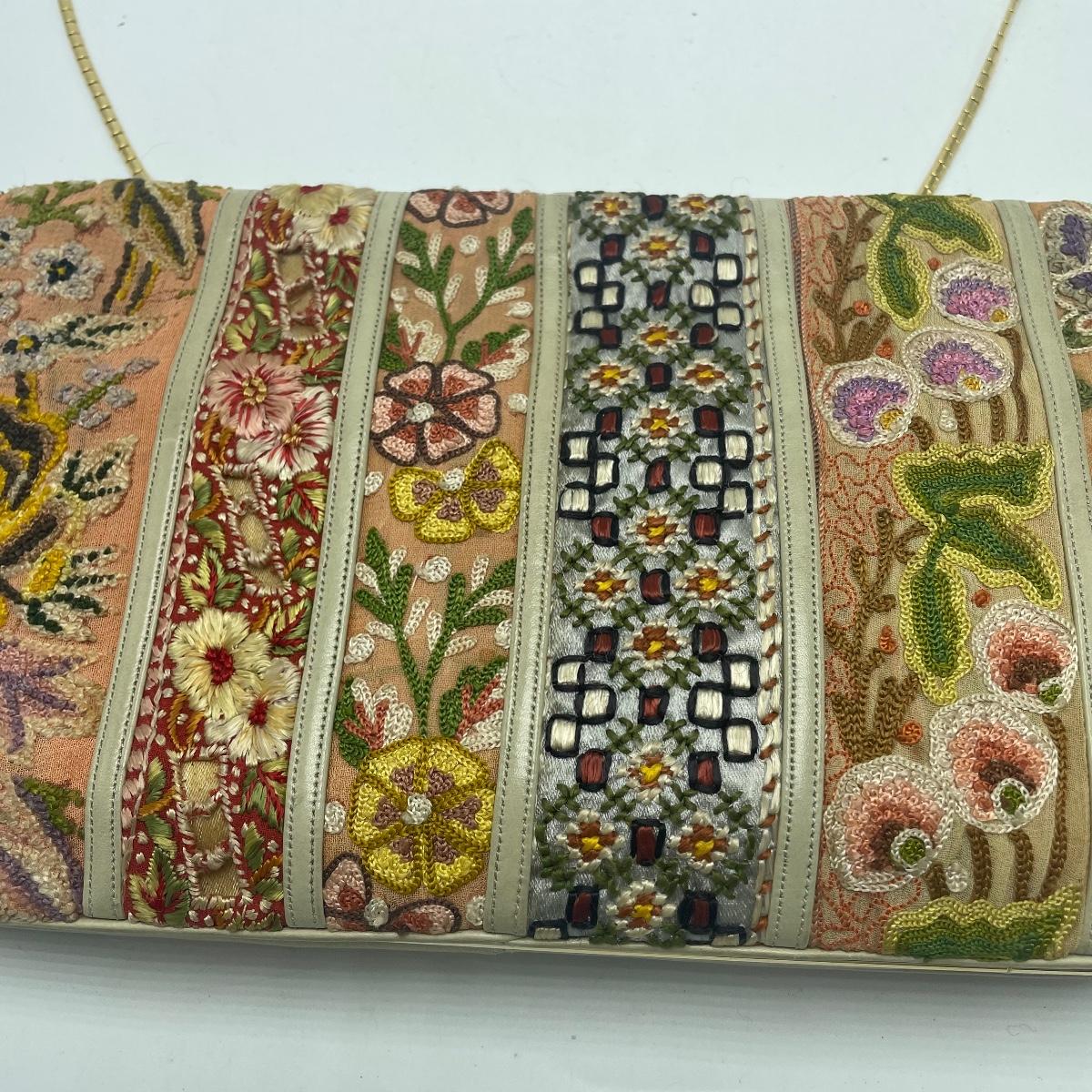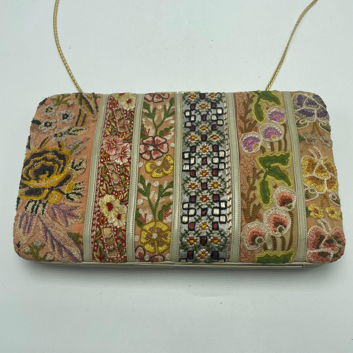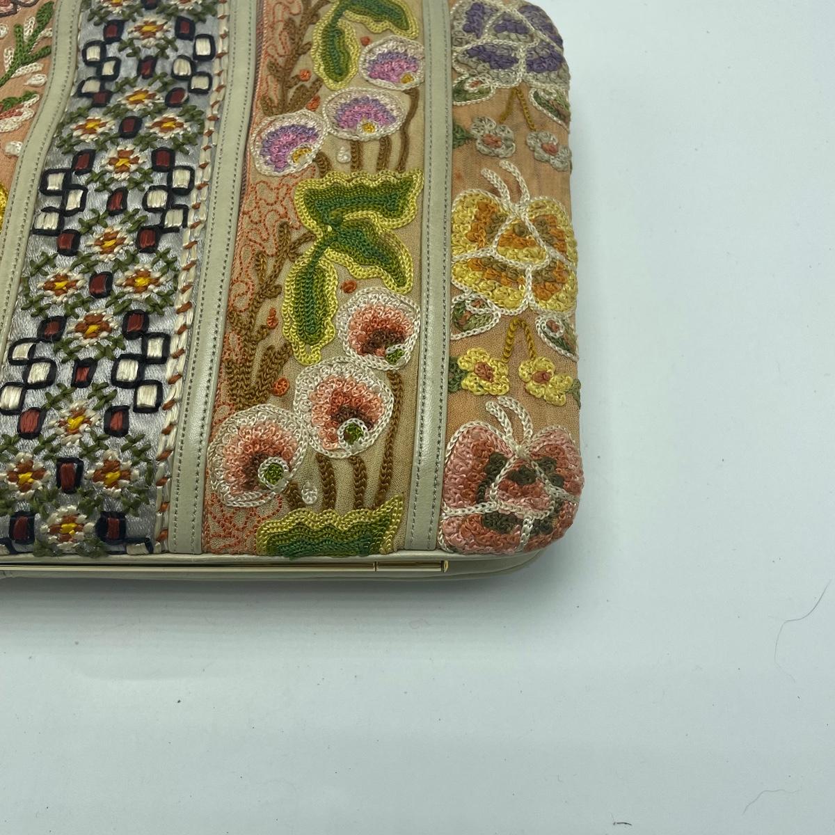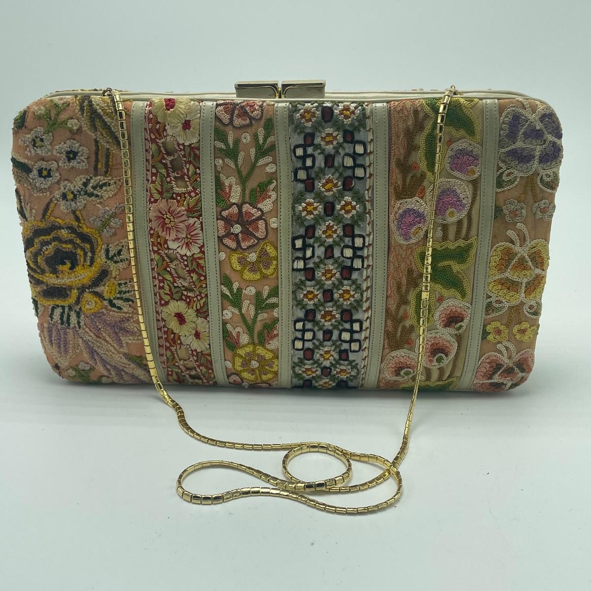 This gorgeous vintage Judith Lieber purse has been well cared for with only some to be expected minor signs of age (shown in last image and barely visible with a little discoloration on the interior frame), no rips or stains. The embroidery that surrounds the outer shell is in very good condition. Purse comes with matching coin purse and a storage bag which will be the reason it’s in such good condition.
