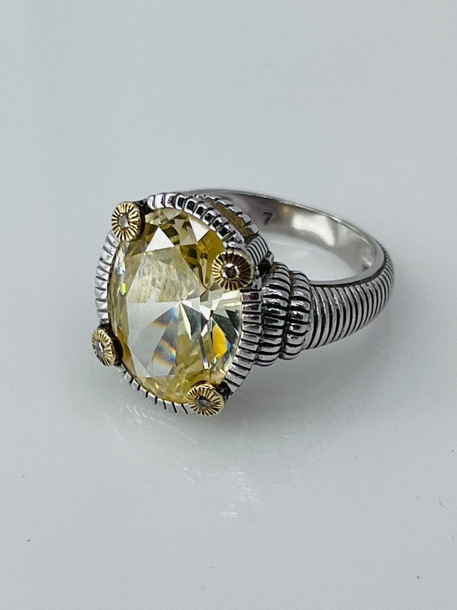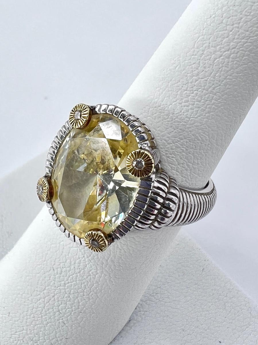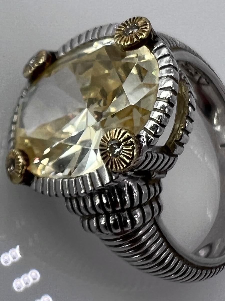 JUDITH RIPKA ~ 18K / Sterling Silver (925) ~ Size 7 ~ Citrine Stone Ring (EK)
